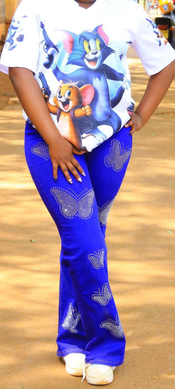 BUTTERFLY mummy jeans+ Cartooned V shaped Top for Girls and LADIES ( feel free to chat seller
