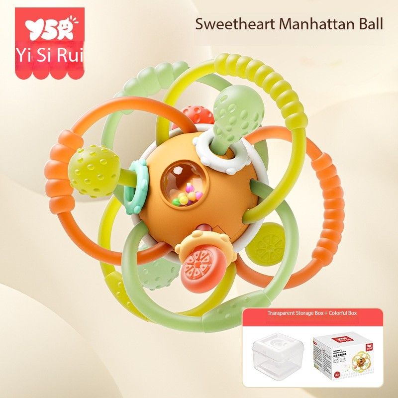 Manhattan hand-held ball Silicone biting baby toy, 0-1 year old early education and intelligence development, 3 to 6 months baby teething gel