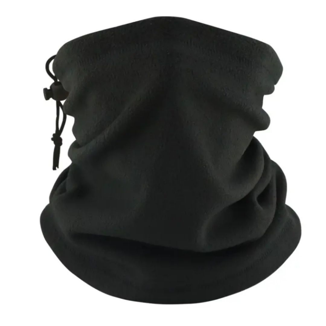Warm Winter Neck Gaiter HM-3 Polar Fleece Half Mask with Adjustable Drawstring – Windproof, Dustproof, Motorcycle & Outdoor Cold Weather Face Cover Black Ski Bandana Tube Scarf Hiking Military Camping