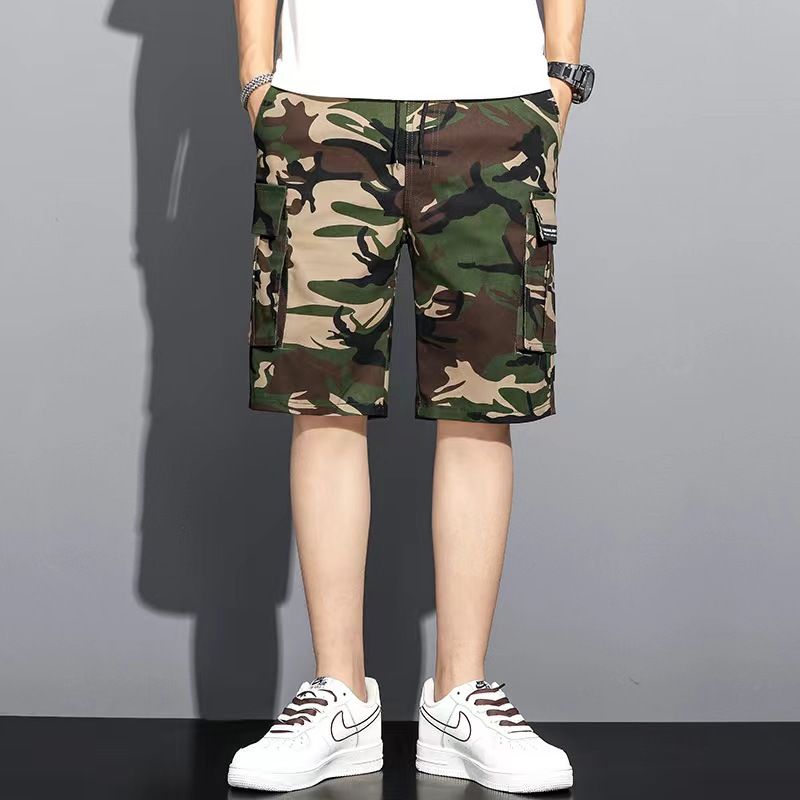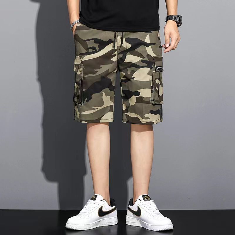 Fashionable and trendy summer camouflage workwear shorts, men's loose five quarter pants, multi pocket plus size mid length shorts, beach pants, casual