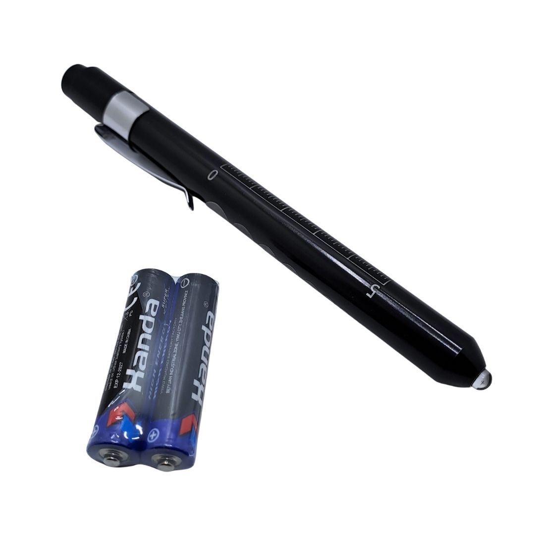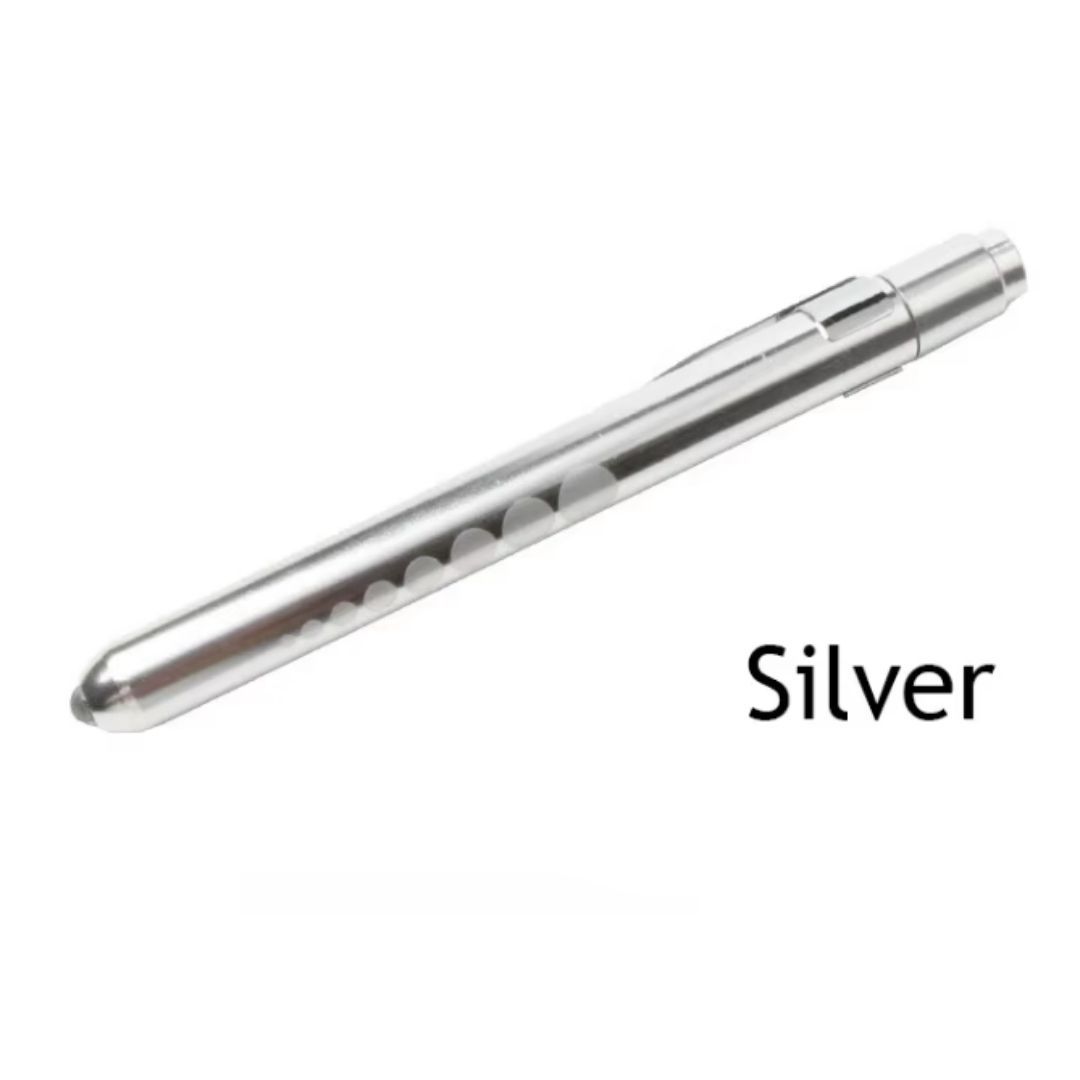 Medical Pen Torch With Pupil Gauge Aluminum Alloy Nurse Doctor Diagnostic Flashlight With Free AAA Batteries Included Waterproof IP65 LED White Light Dental Healthcare Interns First Aid Metallic