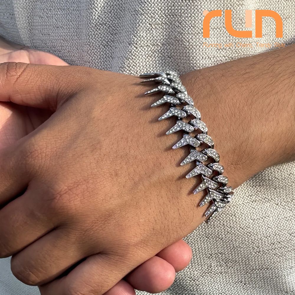 Cuban Link Chain for Men Women Bling Miami Necklace/Bracelet Iced Out Chain with Thorns Diamond Cubic-Zirconia Hip Hop Jewelry - Silver