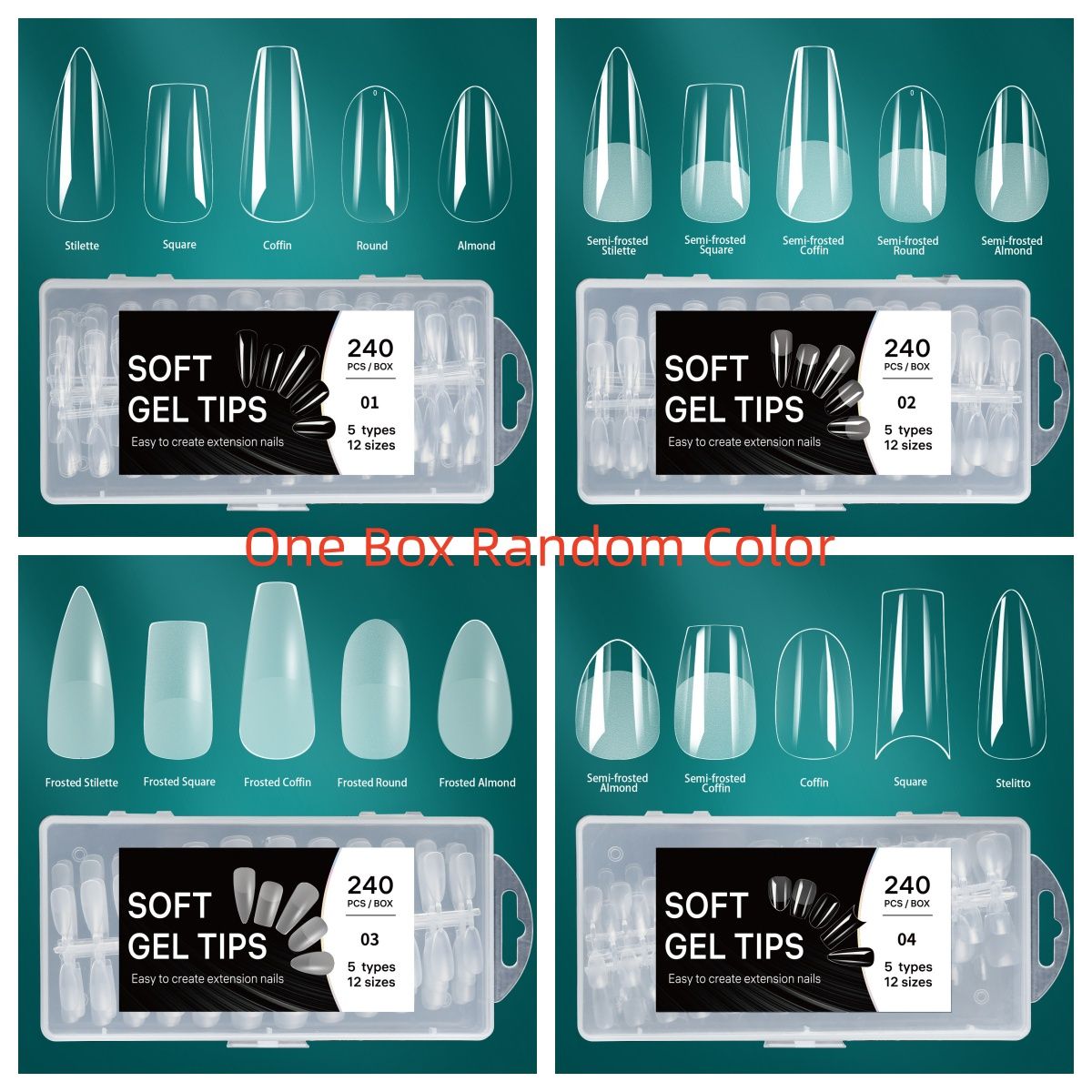 5 In 1 Boxed False Nail Tips Soft Gel Full Cover Semi-matte Capsules Almond French Coffin Fake Nails Extension Press On Nails E0139