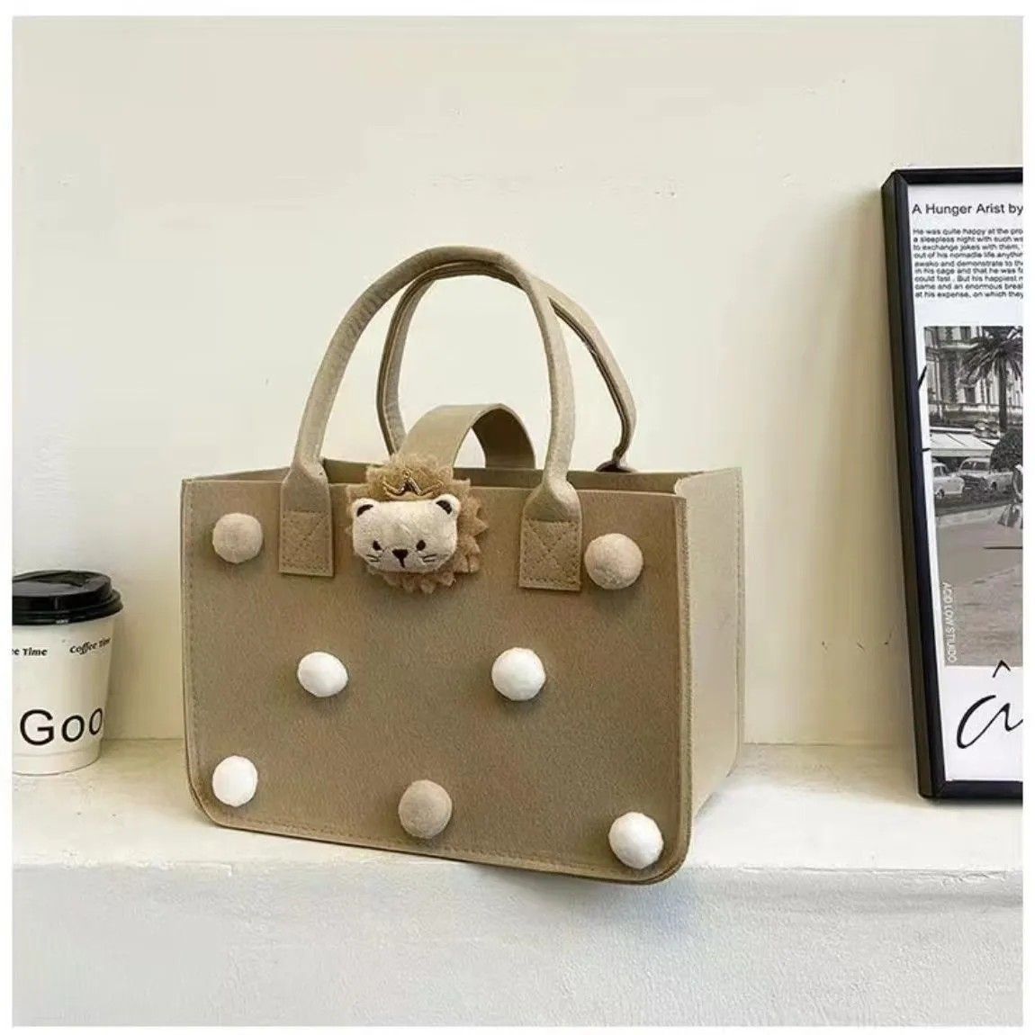 Adorable large-capacity felt tote bags (3 colors) with pom-poms & animal charms. Spacious, lightweight & stylish—perfect for Kenyan young ladies’ daily outings, shopping or casual use