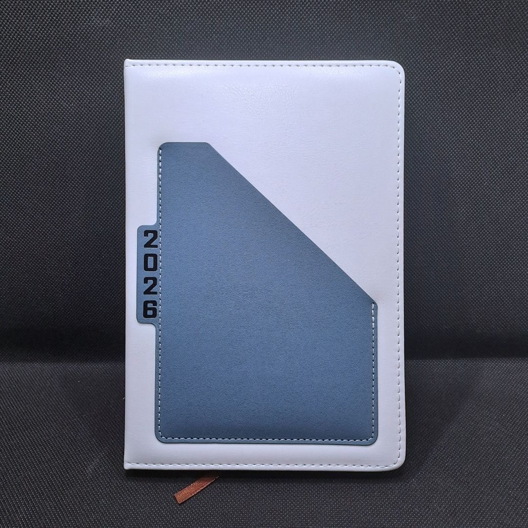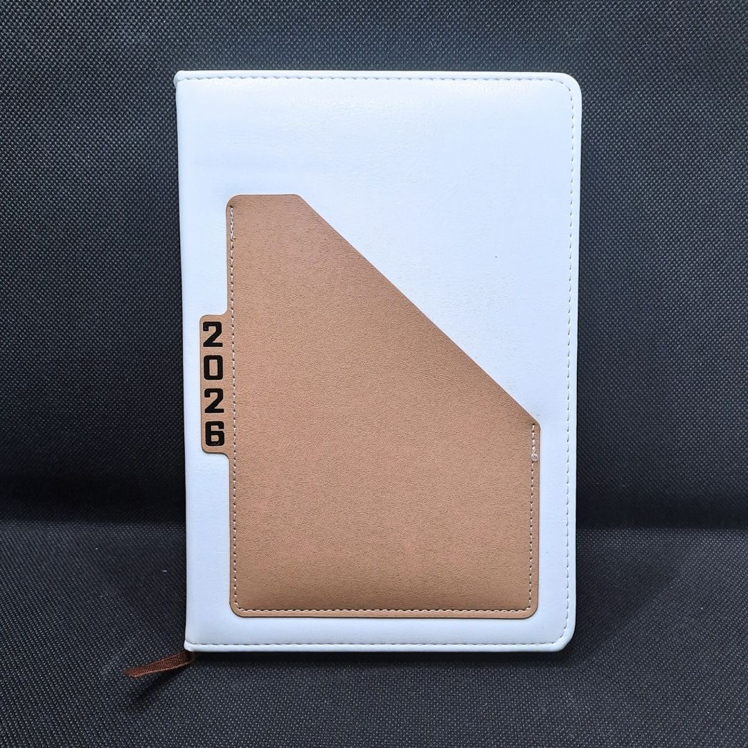Executive 2026 Diary A5 PU Leather Planner White Hardcover Daily Journal Notebook with Pocket & Calendar Gift Cover Classic Design Official Christmas Boxing Day New Year Valentines Birthday 365 Size
