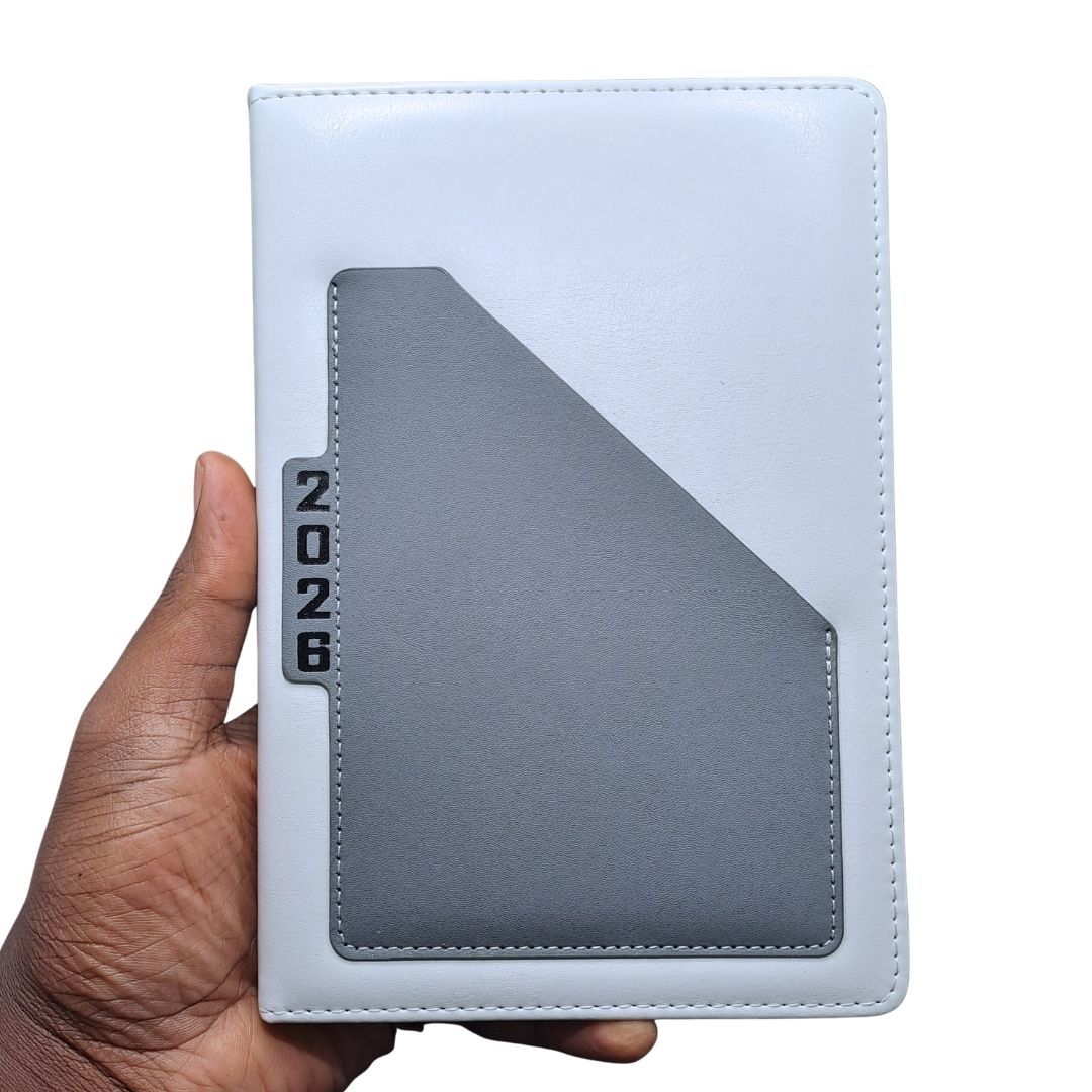 2026 Diary Executive PU Leather A5 Daily Planner & Organizer White Hardcover Executive Journal with Pocket, Customizable Business New Year Gift Official Calendar Office Corporate Schedule Personal 365