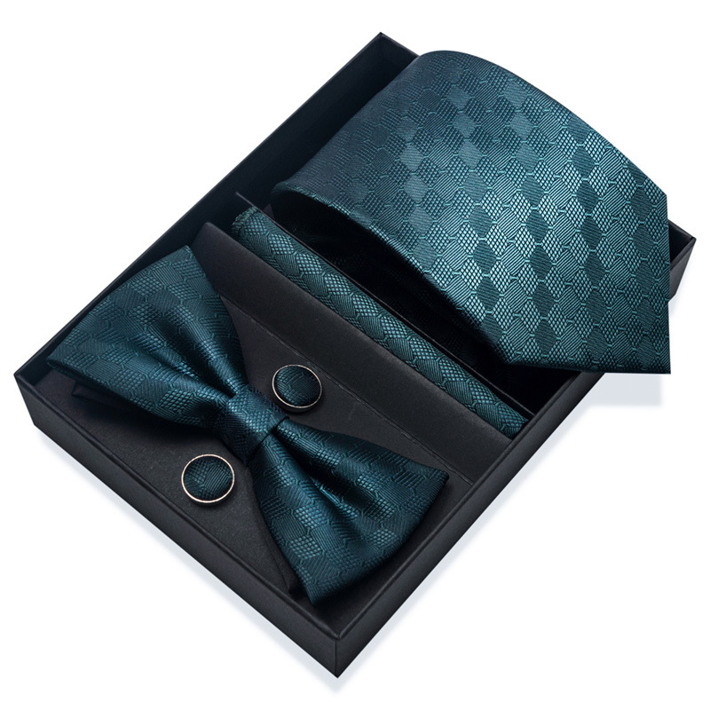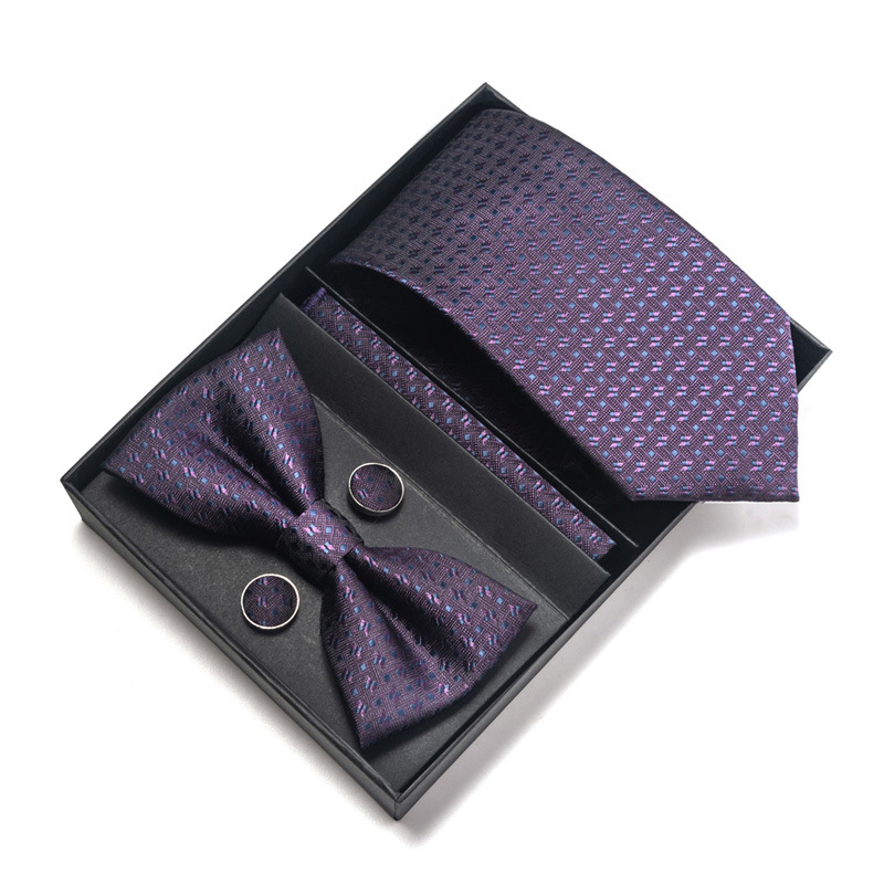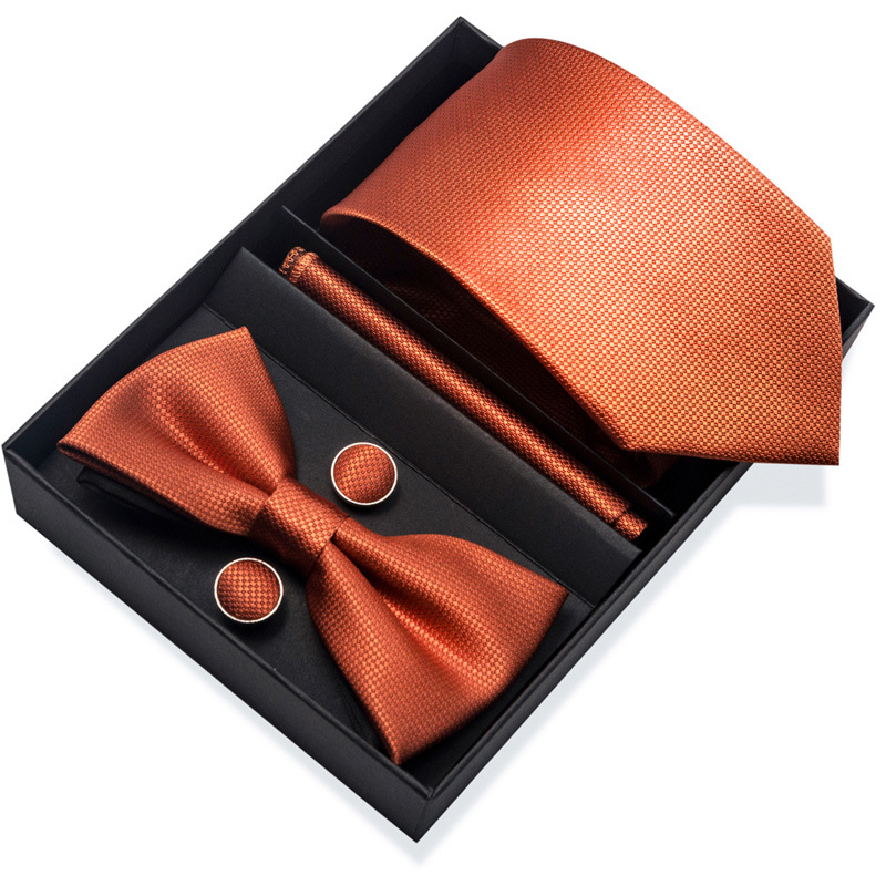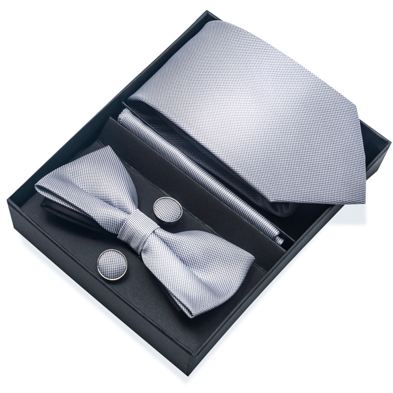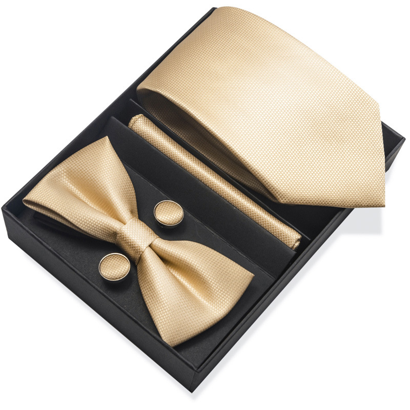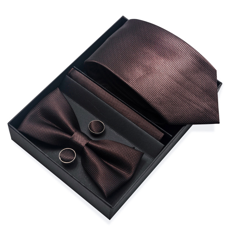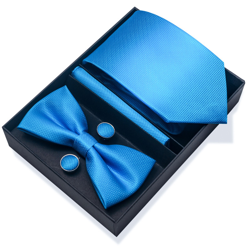 Men's polyester bow tie square scarf cufflinks tie set 60 colors wedding groomsmen professional business ties for men