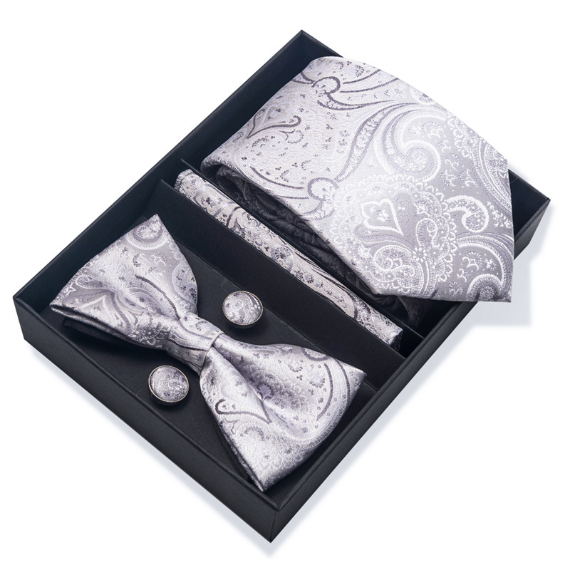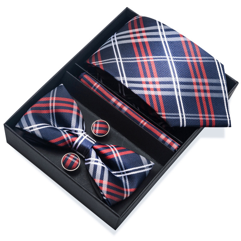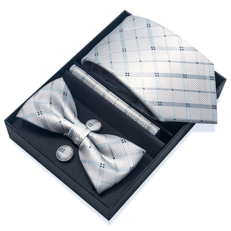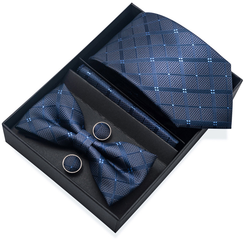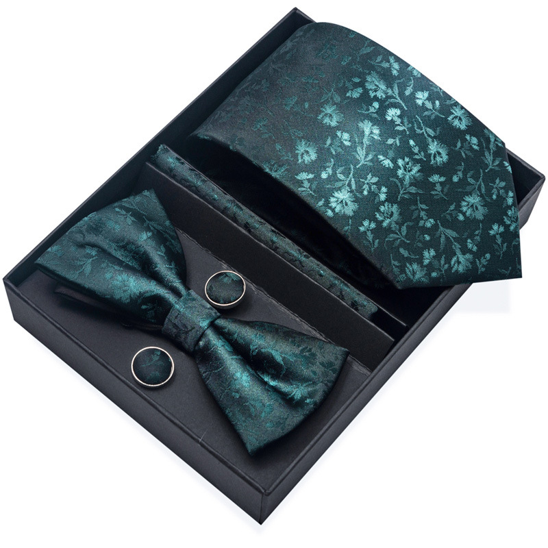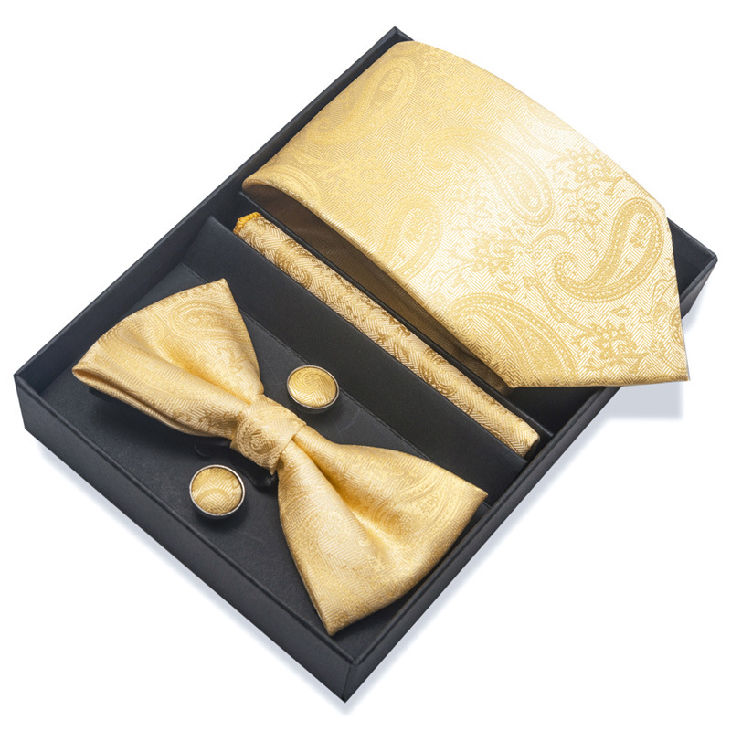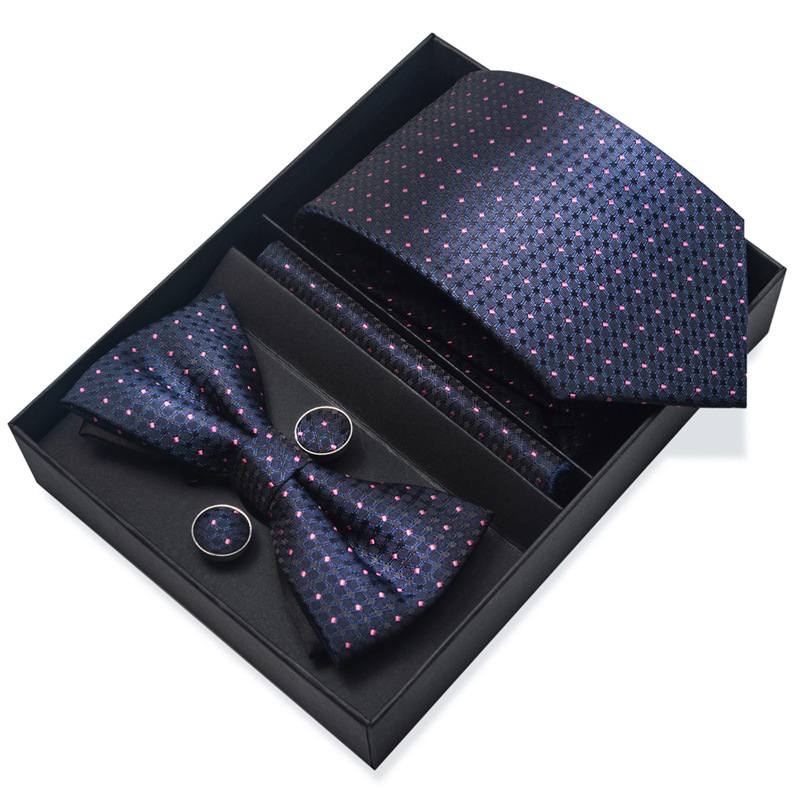 Men's polyester bow tie square scarf cufflinks tie set 60 colors wedding groomsmen professional business ties for men