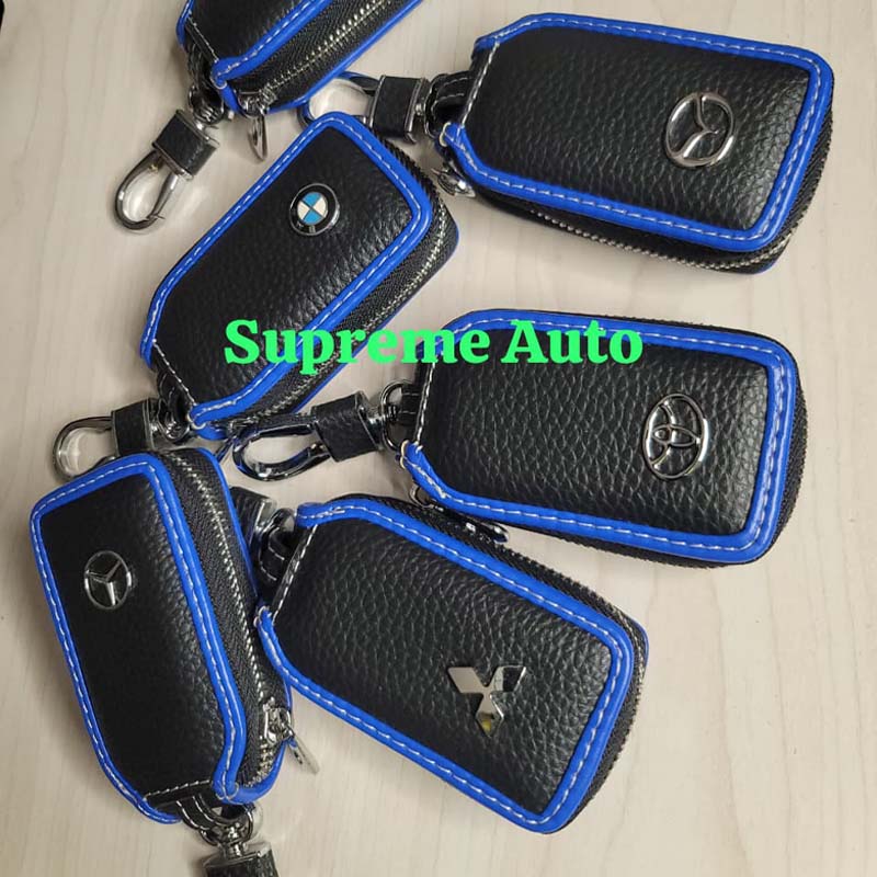 Leather Toyota Car Key Holder Zipper Case Premium PU Auto Key Wallet with Metal Hook Protective Remote Key Cover Bag for Toyota Cars Universal Design