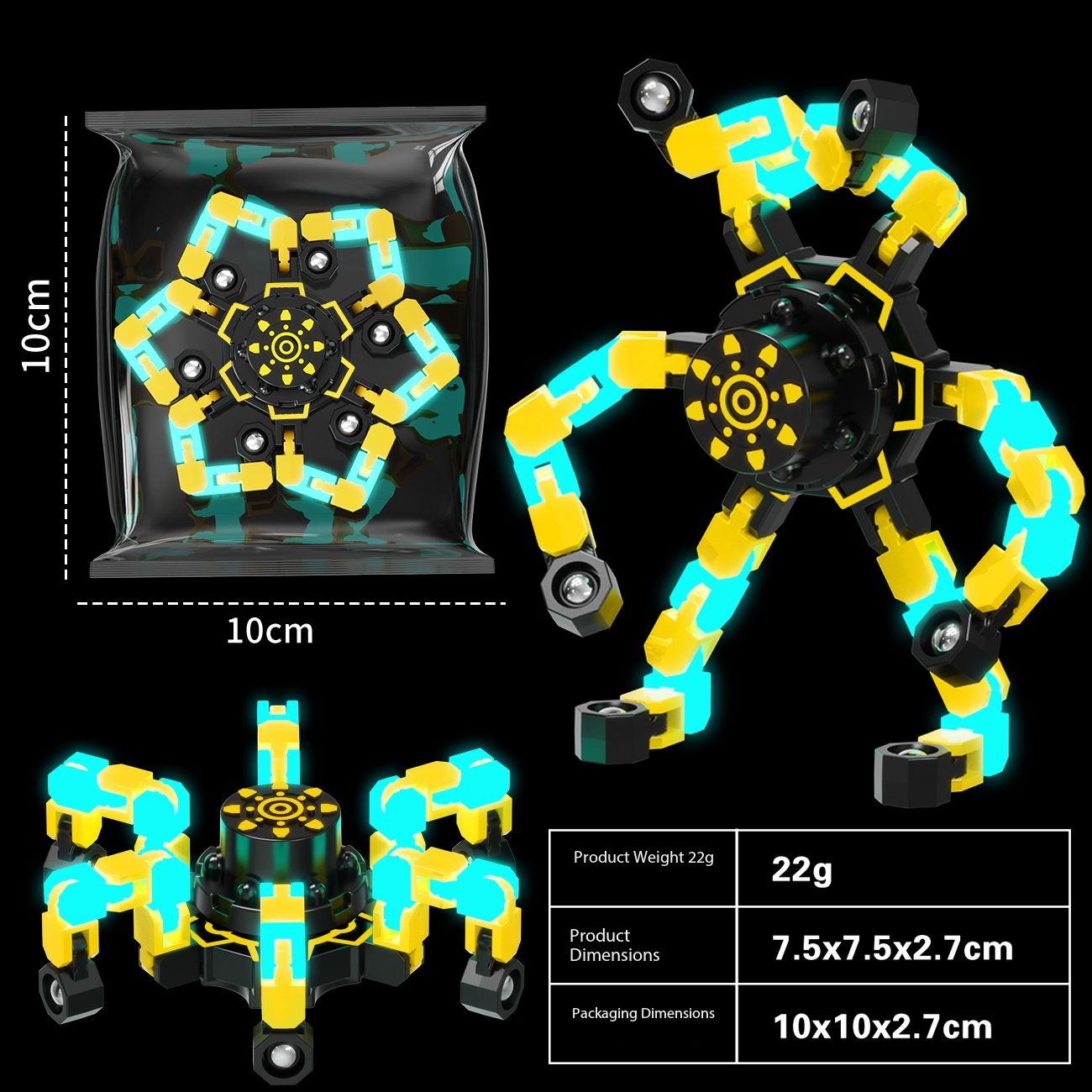 Fingertip mechanical gyroscope transformation machine, luminous intelligence rotating luminous armor chain, new and unique DIY creative toy finger gyroscope