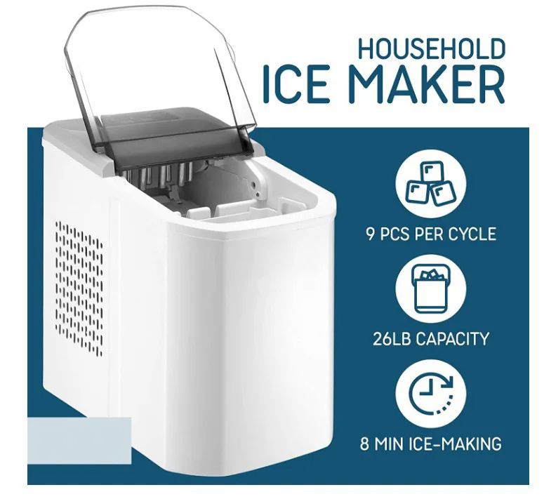 Electric Desktop 26Lbs/24H Instant Pebble Bullet Ice Cube Maker Machine Nugget Ice Automatic Countertop Ice Maker