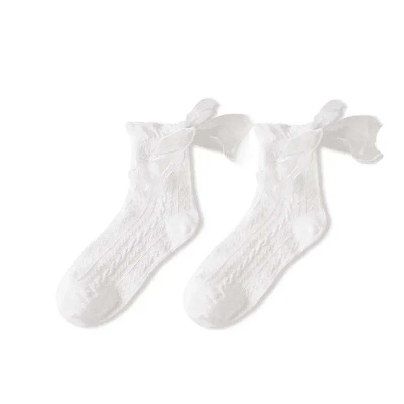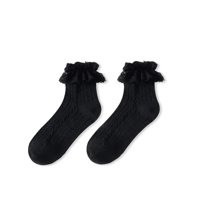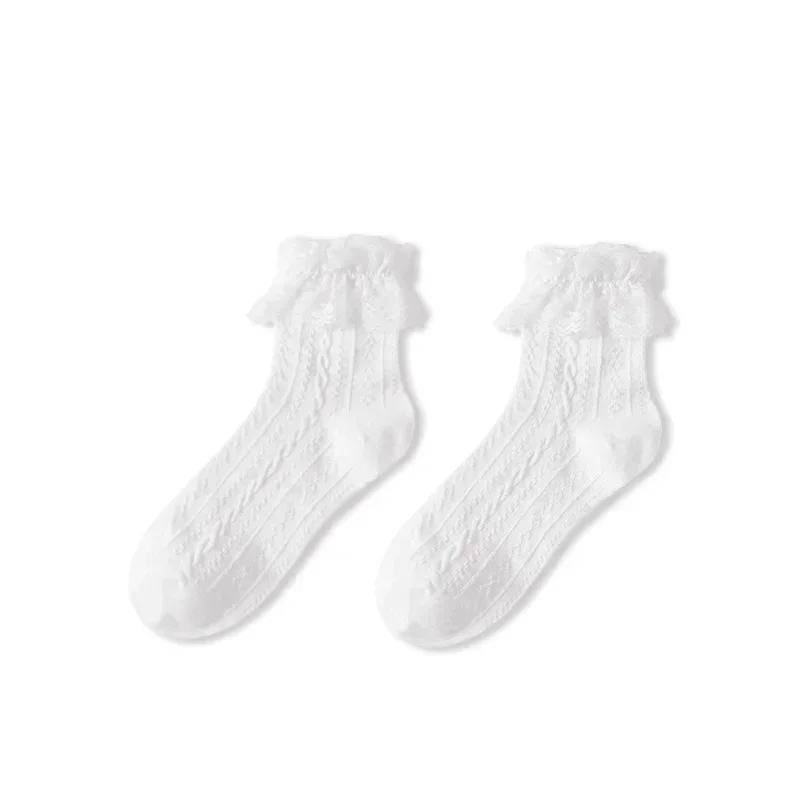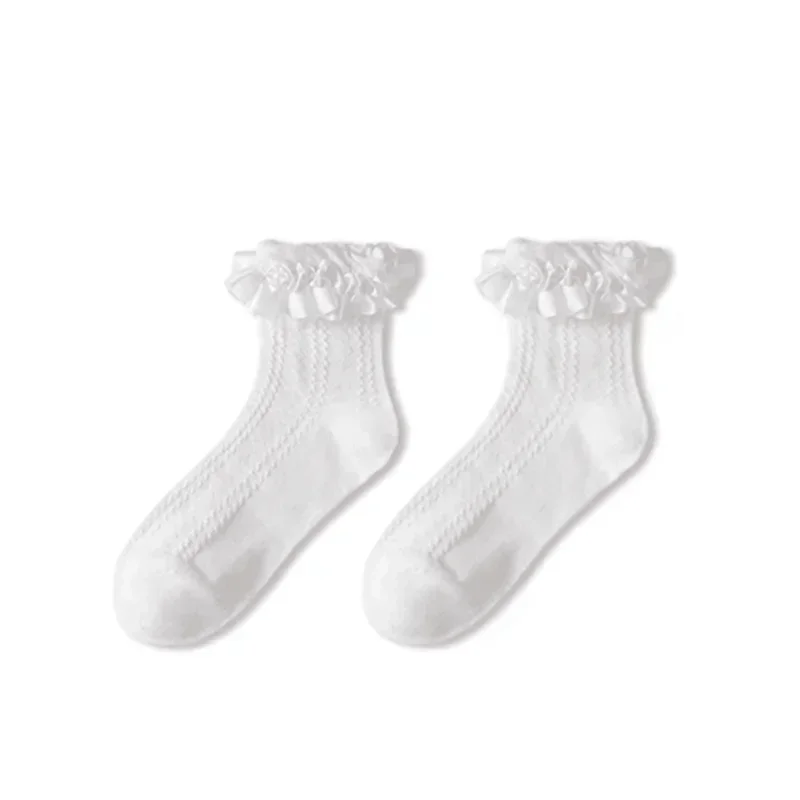 Mid-tube Solid Lace Bow Ruffle Socks Kawaii Lolita Short Socks Cotton Socks JK Japanese Lacework Stockings Women's Stockings