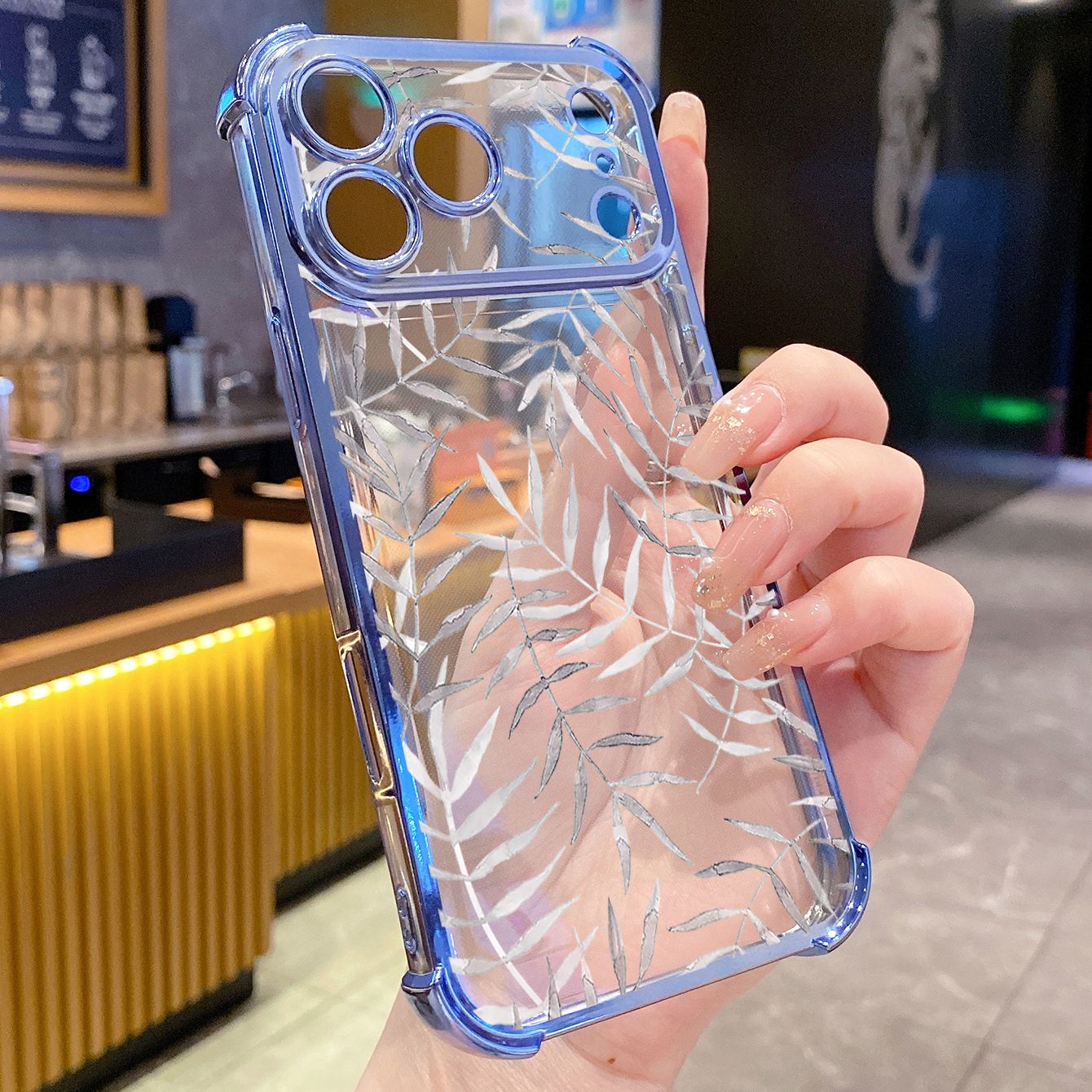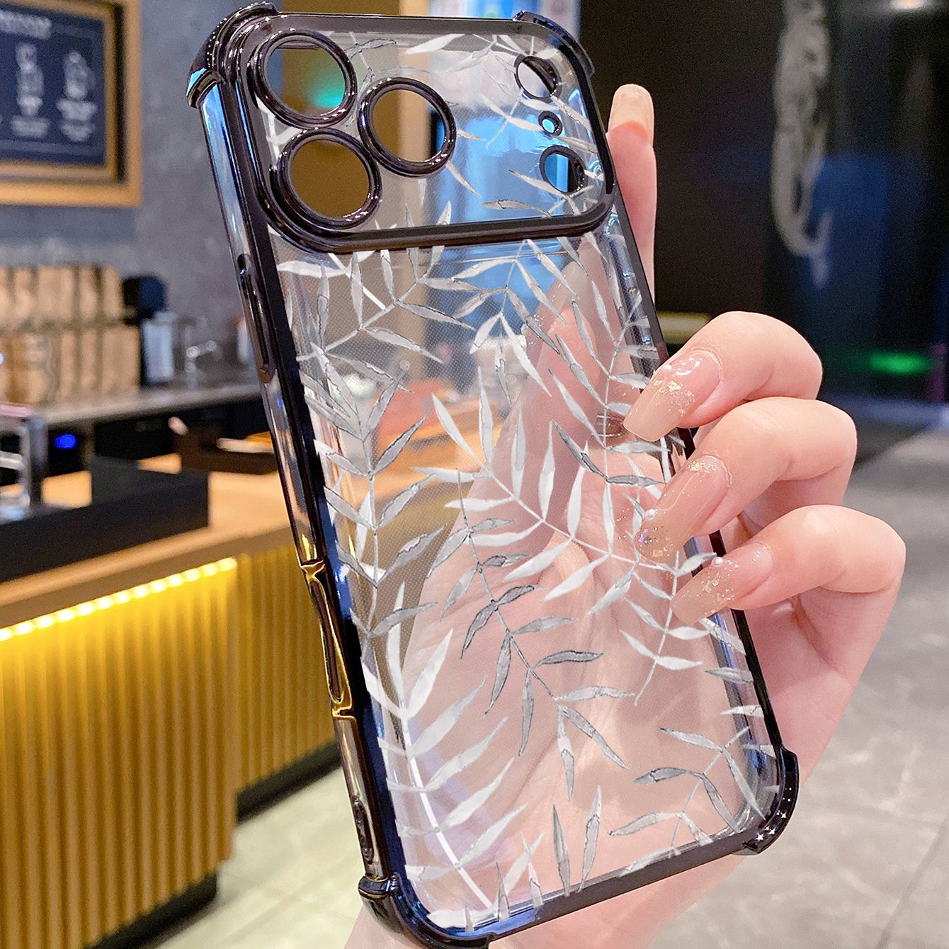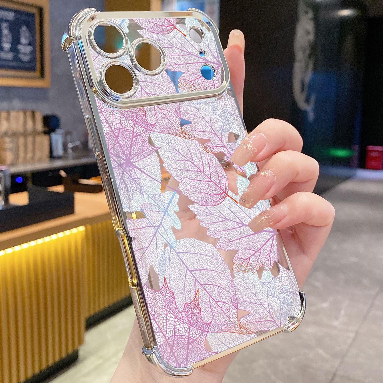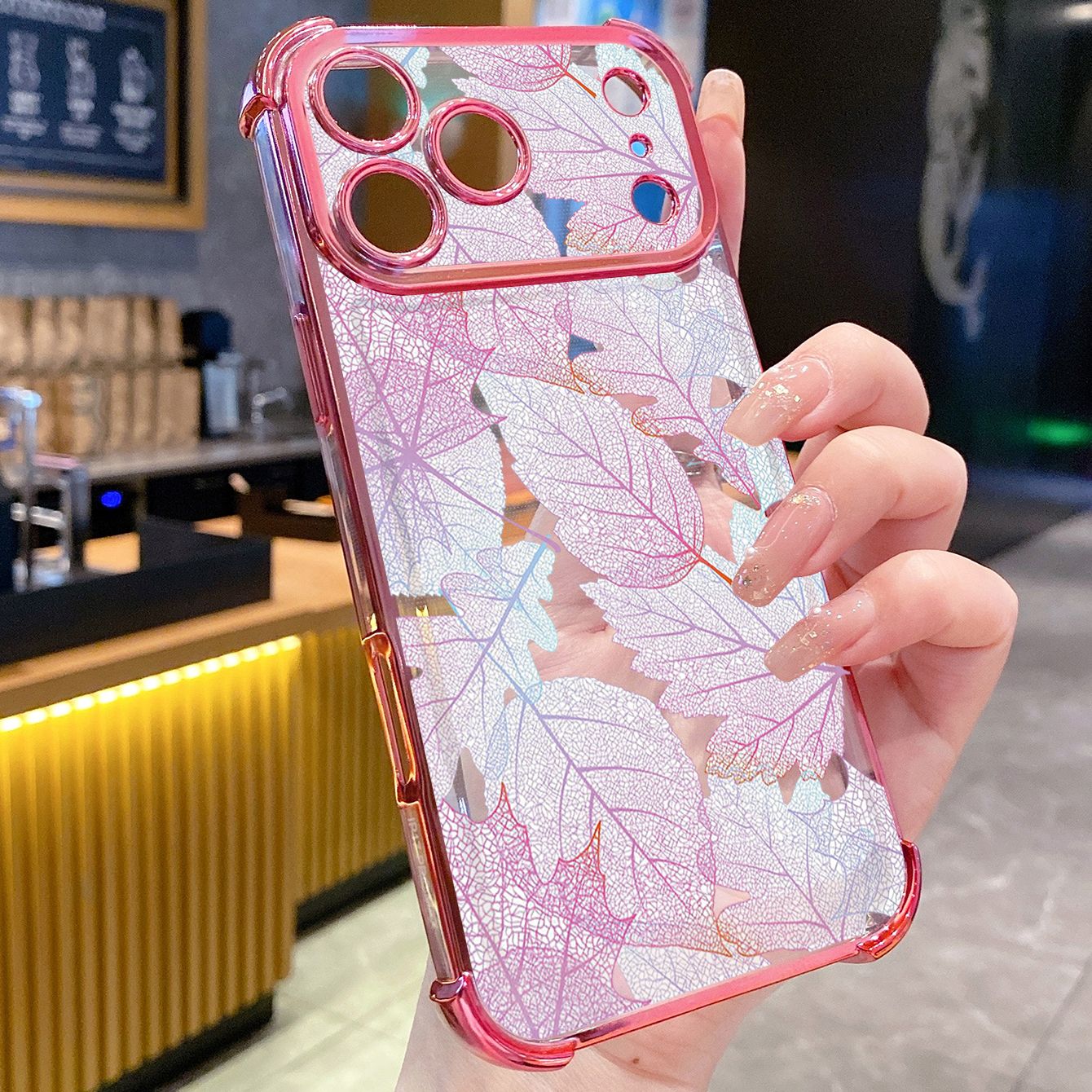 for iPhone 17 Pro Max 16 15 14 Plus Plating Phone Case Shockproof Cover Beauty Leaves