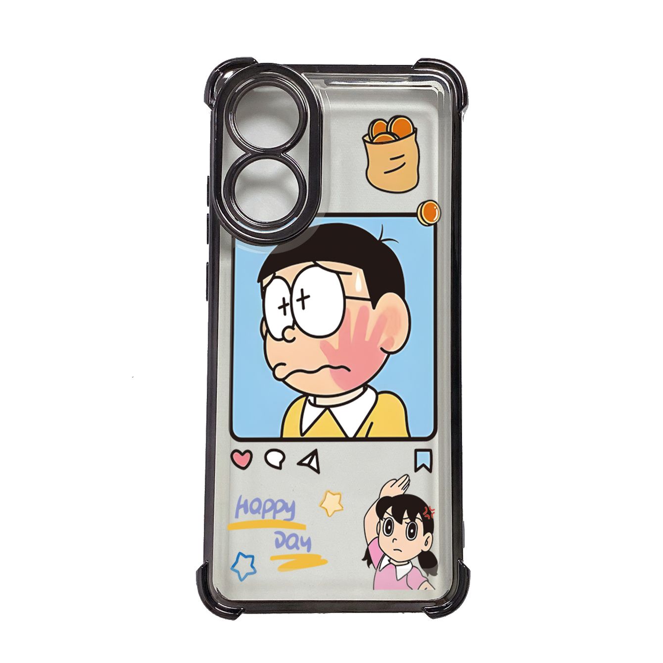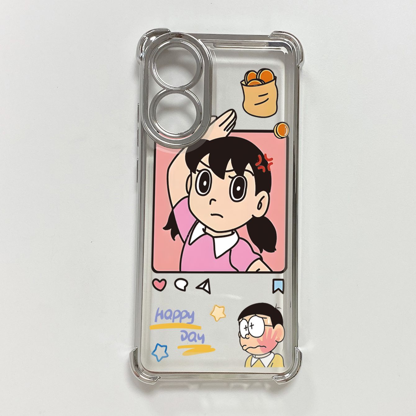 for OPPO A38 A5 Pro Realme C63 C51 C75 VIVO Plating Phone Case Shockproof Cover Nobita Nobi Minamoto Shizuka Couple