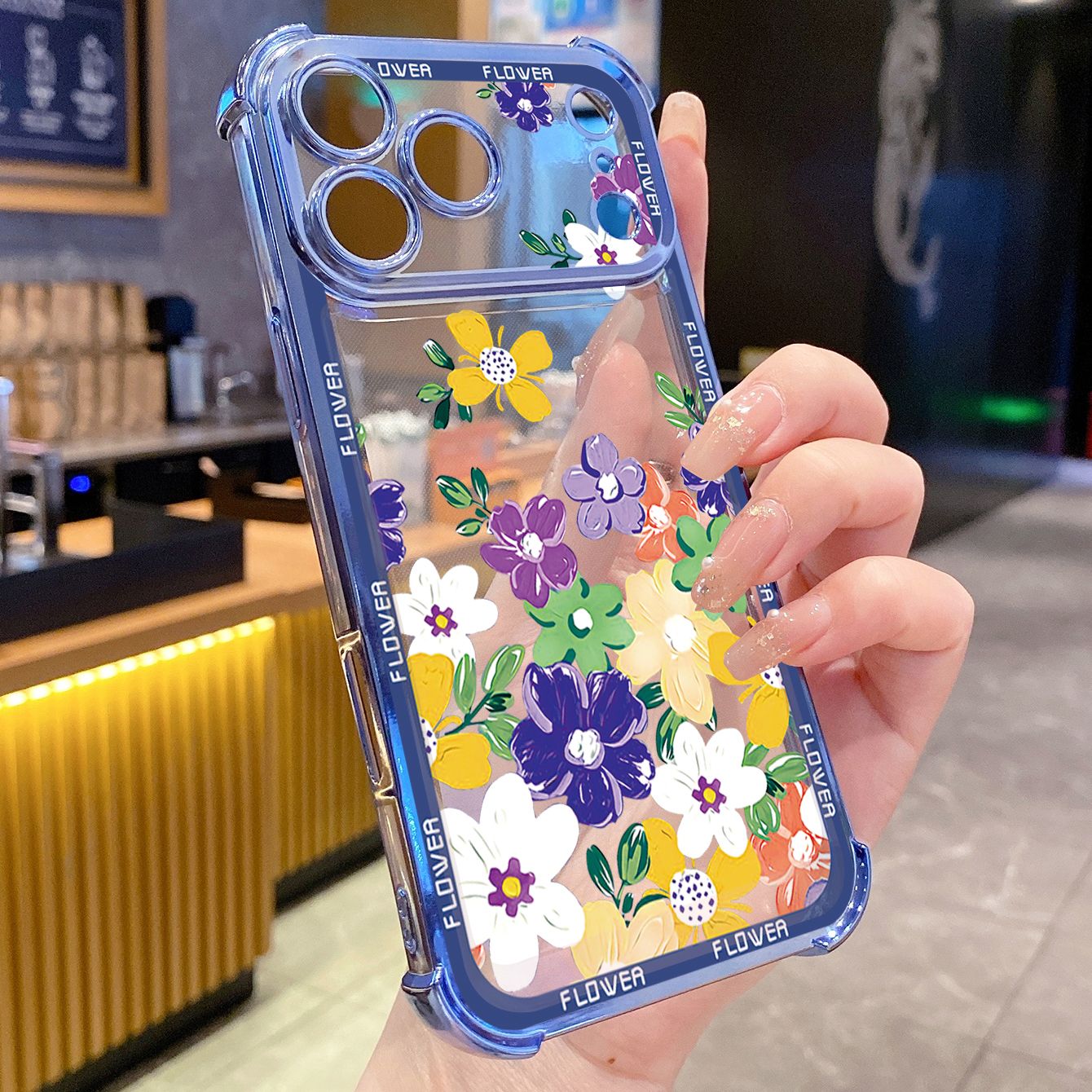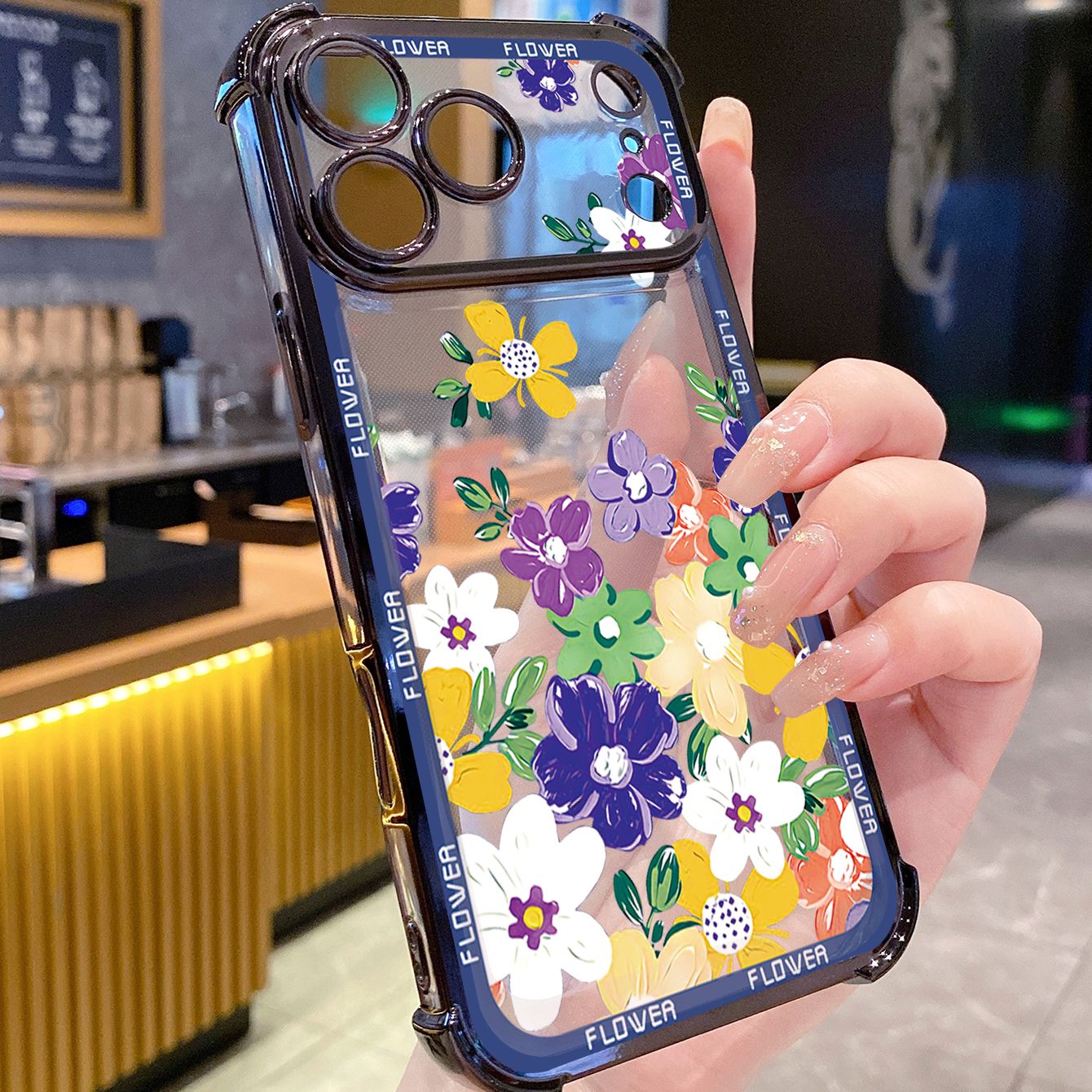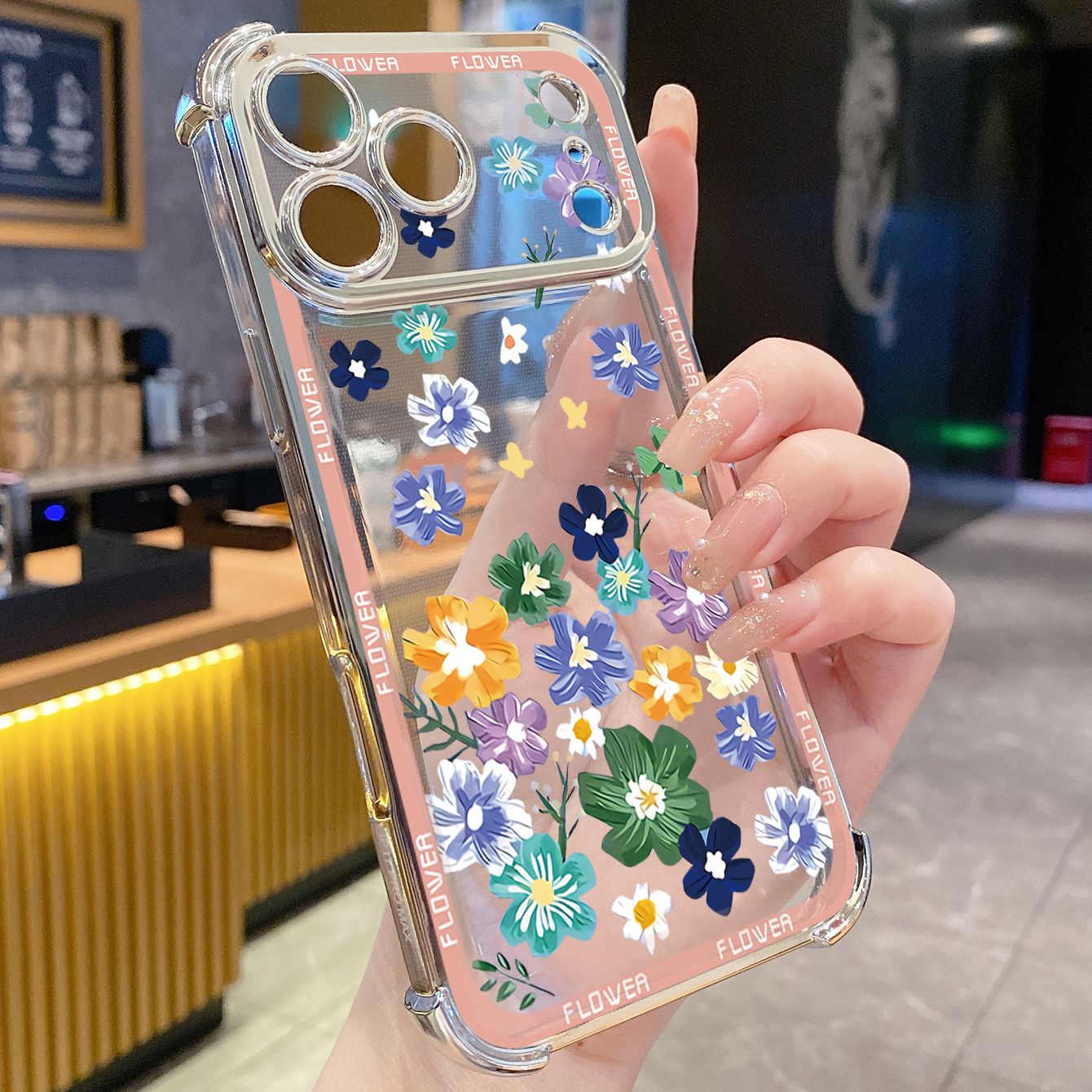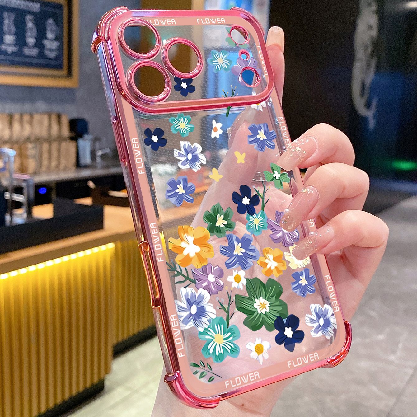 for iPhone 17 Pro Max 16 15 14 Plus Plating Phone Case Shockproof Cover Beauty Flower Women