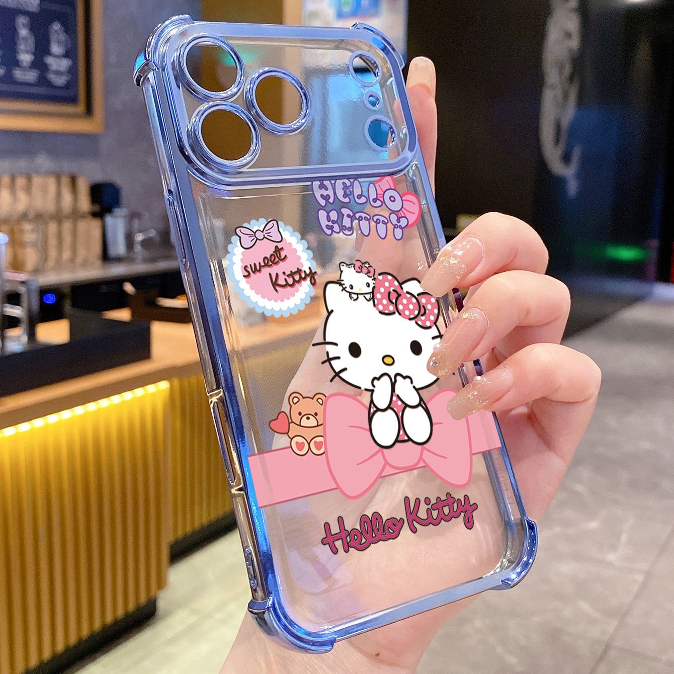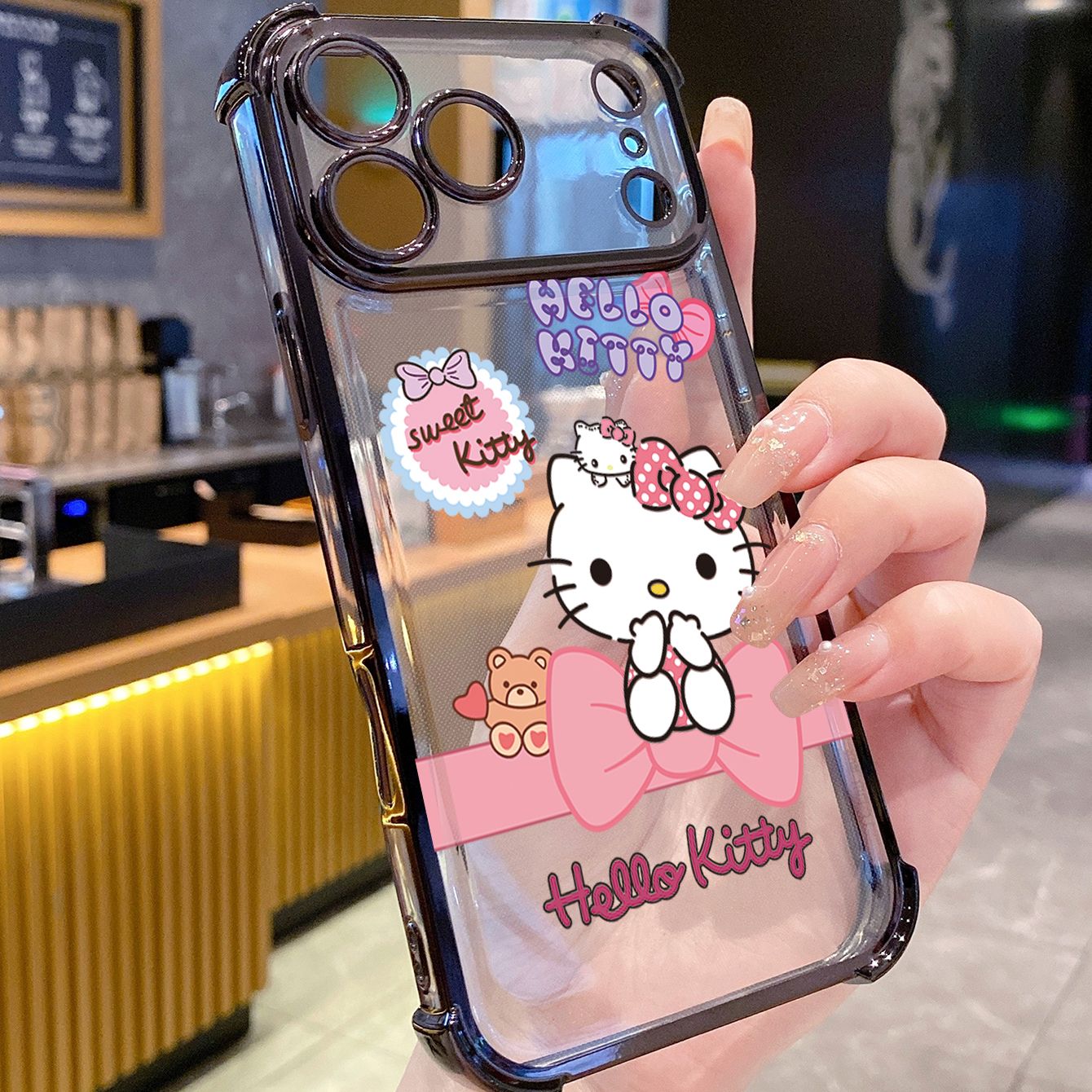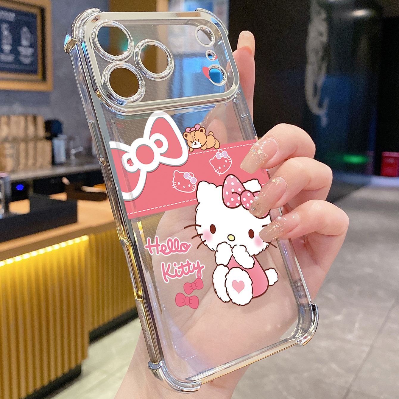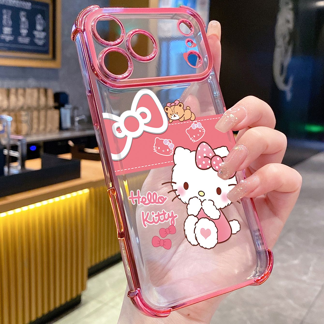 for iPhone 17 Pro Max 16 15 14 Plus Plating Phone Case Shockproof Cover Cartoon Cute HelloKitty