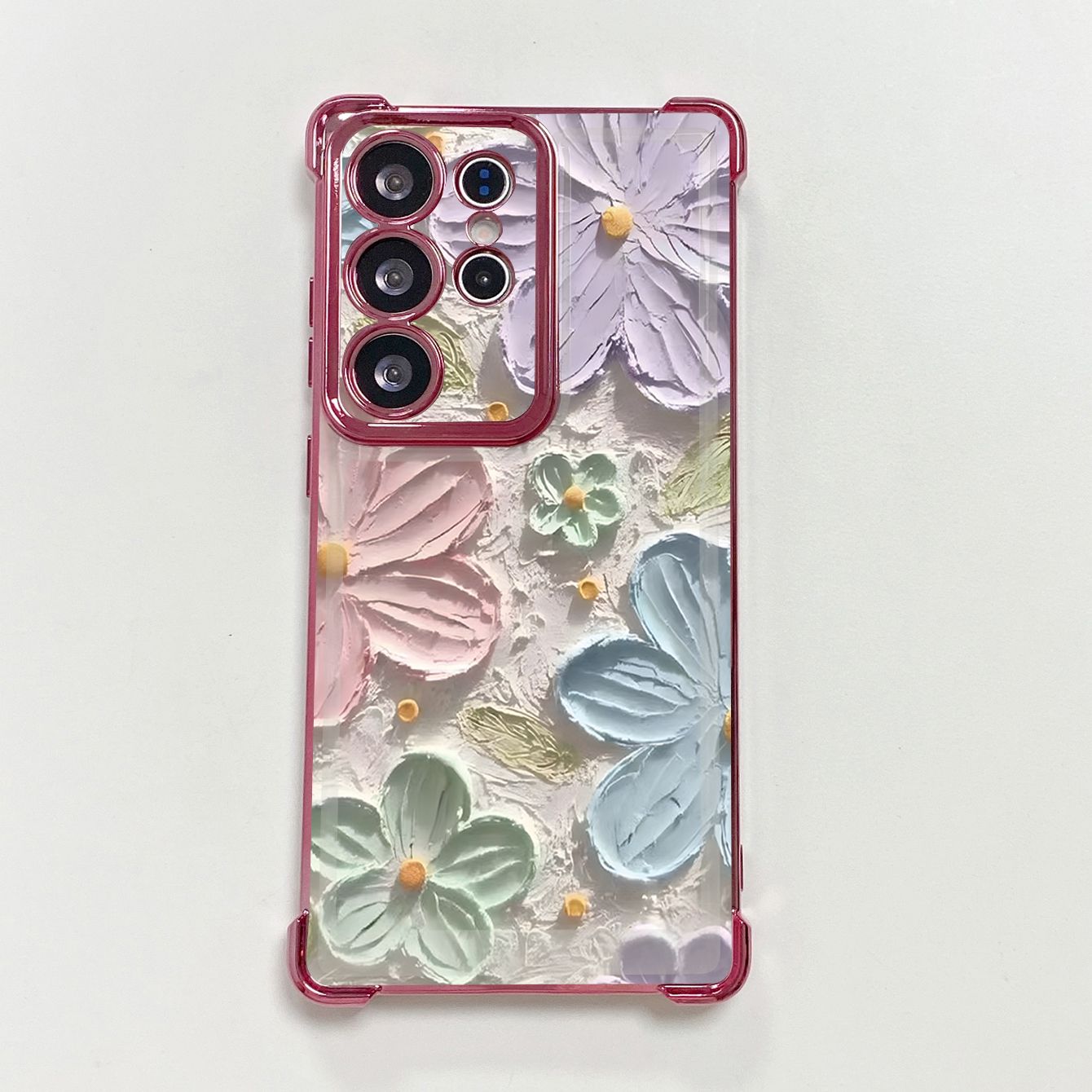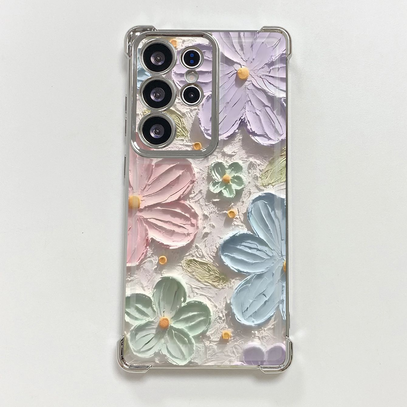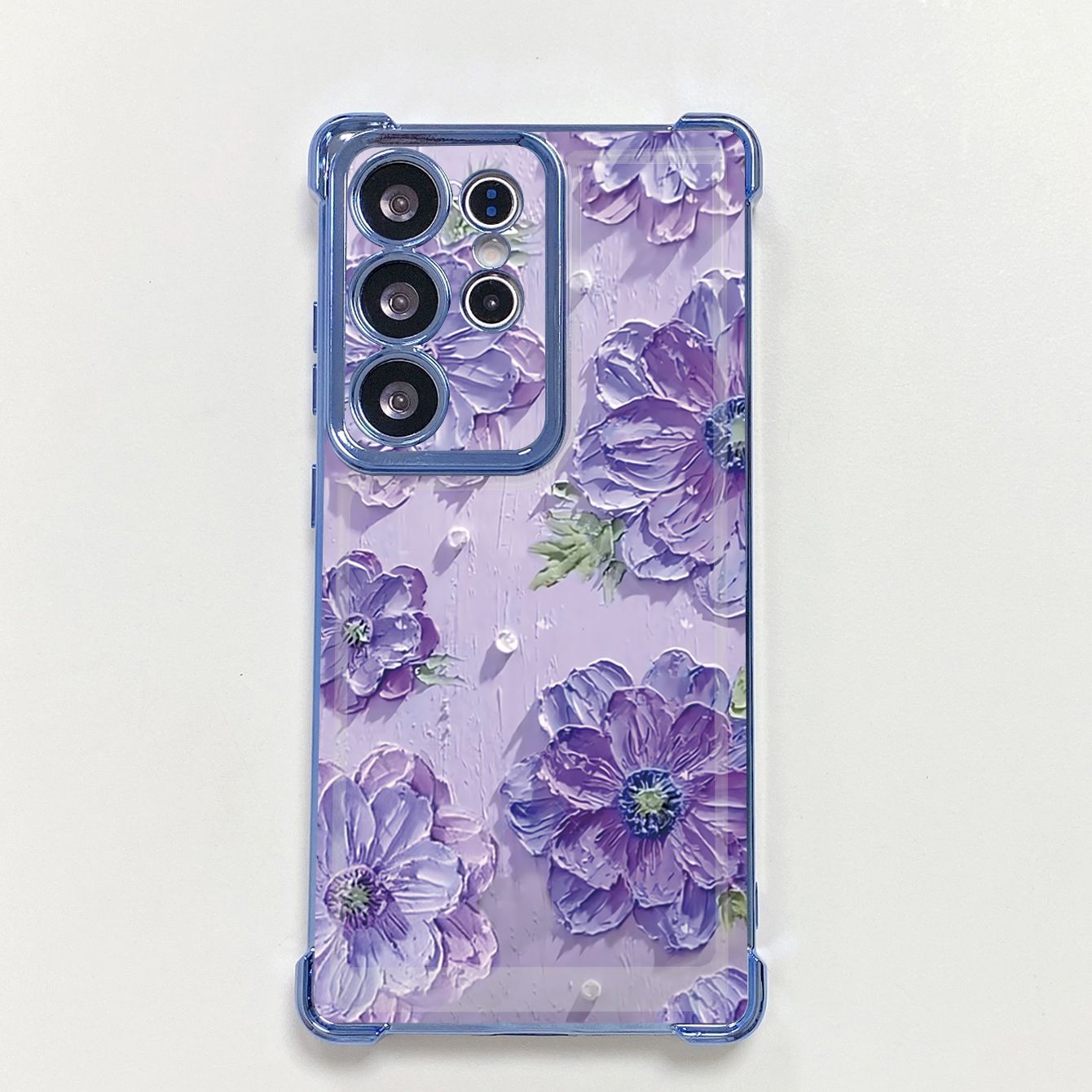 for Samsung Galaxy S26 Ultra S25 Edge S24 Plus A55 Plating Phone Case Shockproof Cover Oil Flower Painting