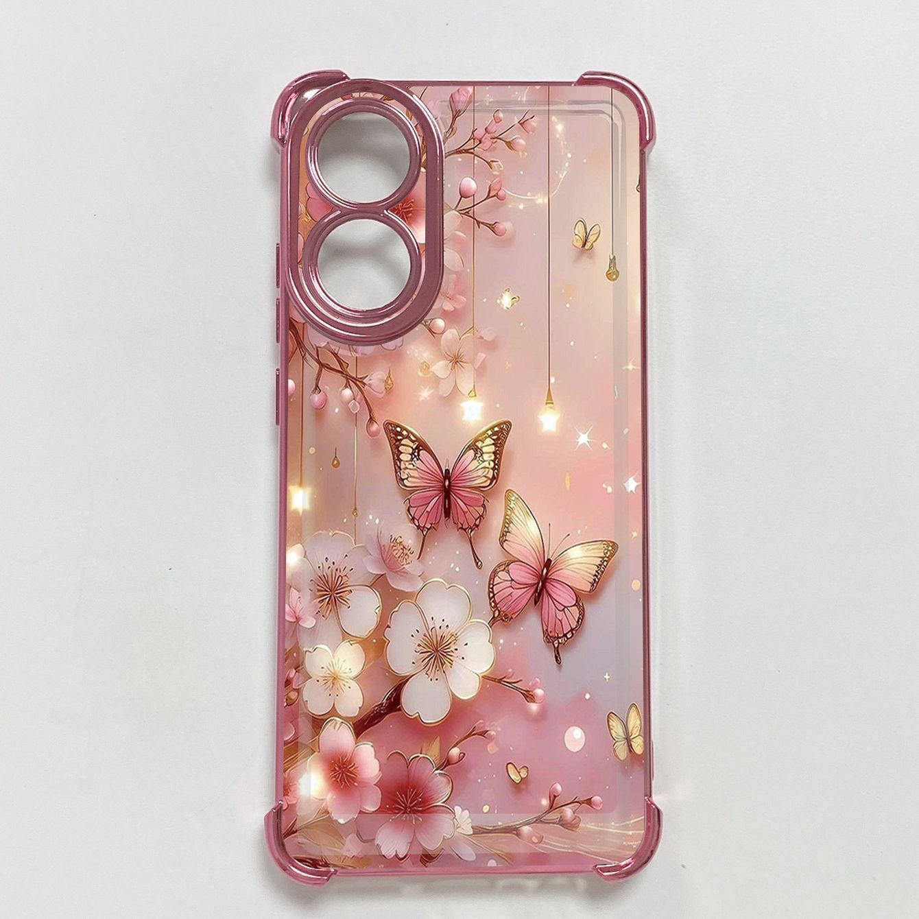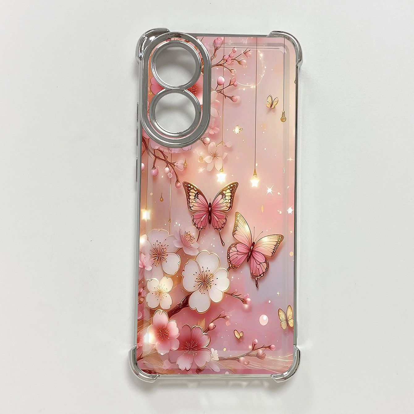 for OPPO A38 A5 Pro Realme C63 C51 C75 VIVO Plating Phone Case Shockproof Cover Flower Butterfly