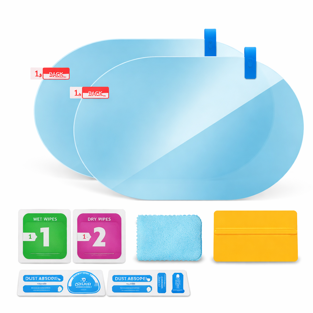 2PCS Car Rearview Mirror Protective Film, Anti-Fog and Rainproof Clear Safety Film for Side Mirrors, Hydrophobic Waterproof Coating Improves Visibility in Rain, Fog and Snow for Safer Driving