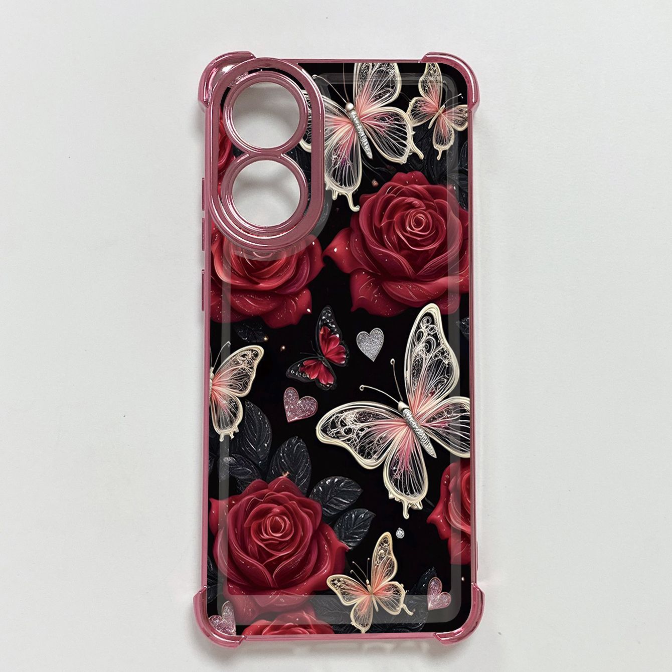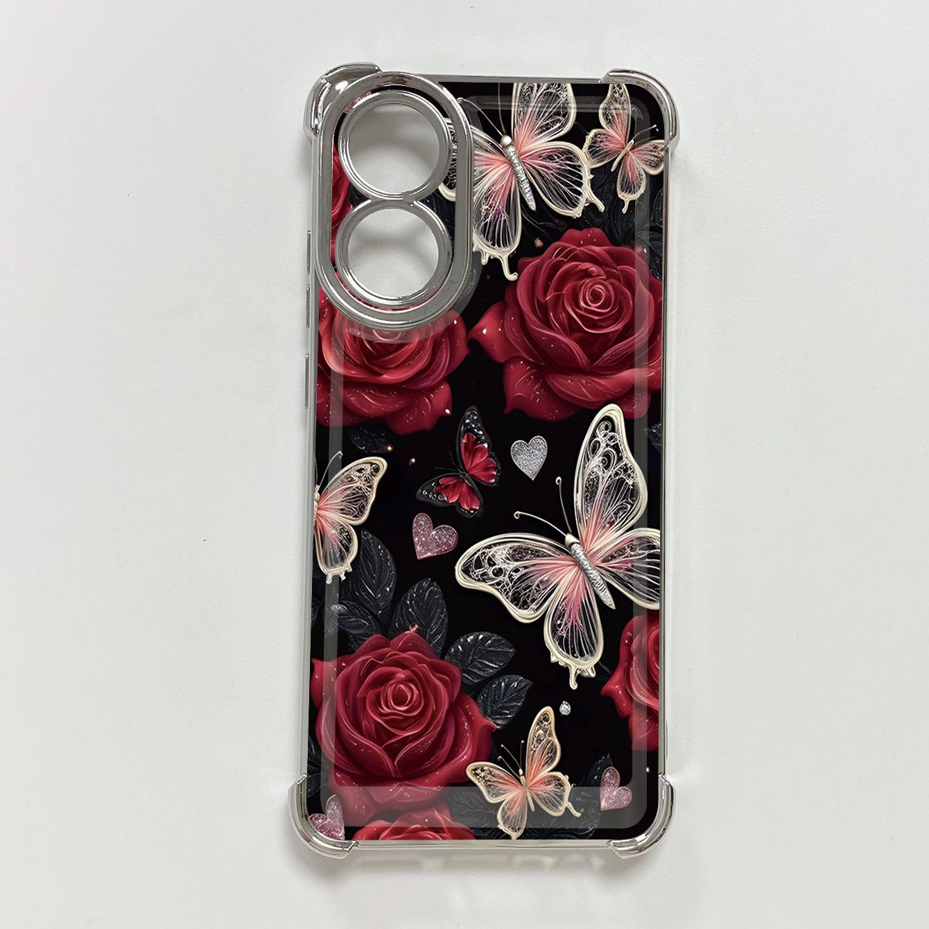 for OPPO A38 A5 Pro Realme C63 C51 C75 VIVO Plating Phone Case Shockproof Cover Luxury Flower Butterfly