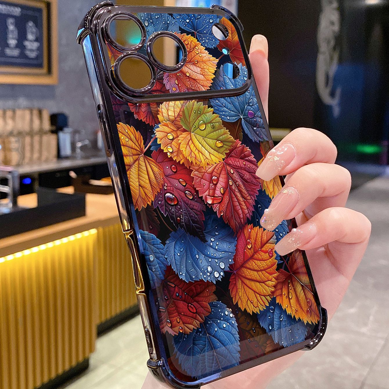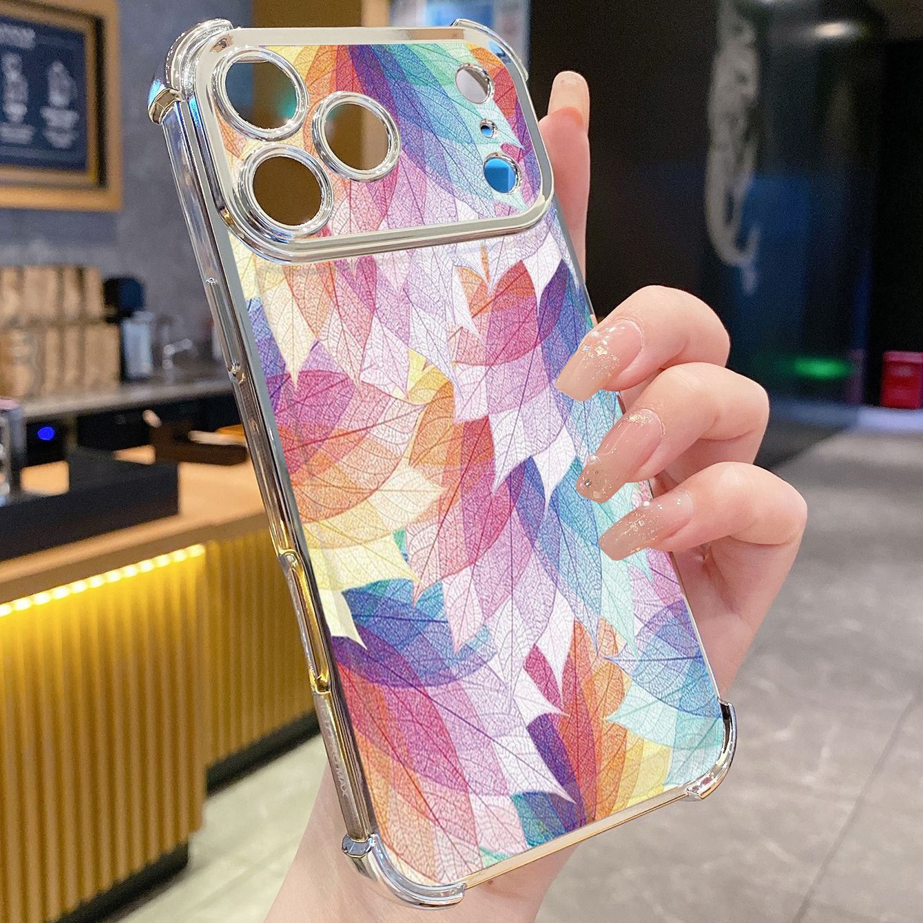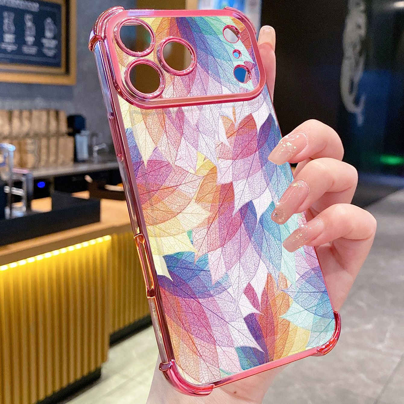 for iPhone 17 Pro Max 16 15 14 Plus Plating Phone Case Shockproof Cover Luxury Leaves
