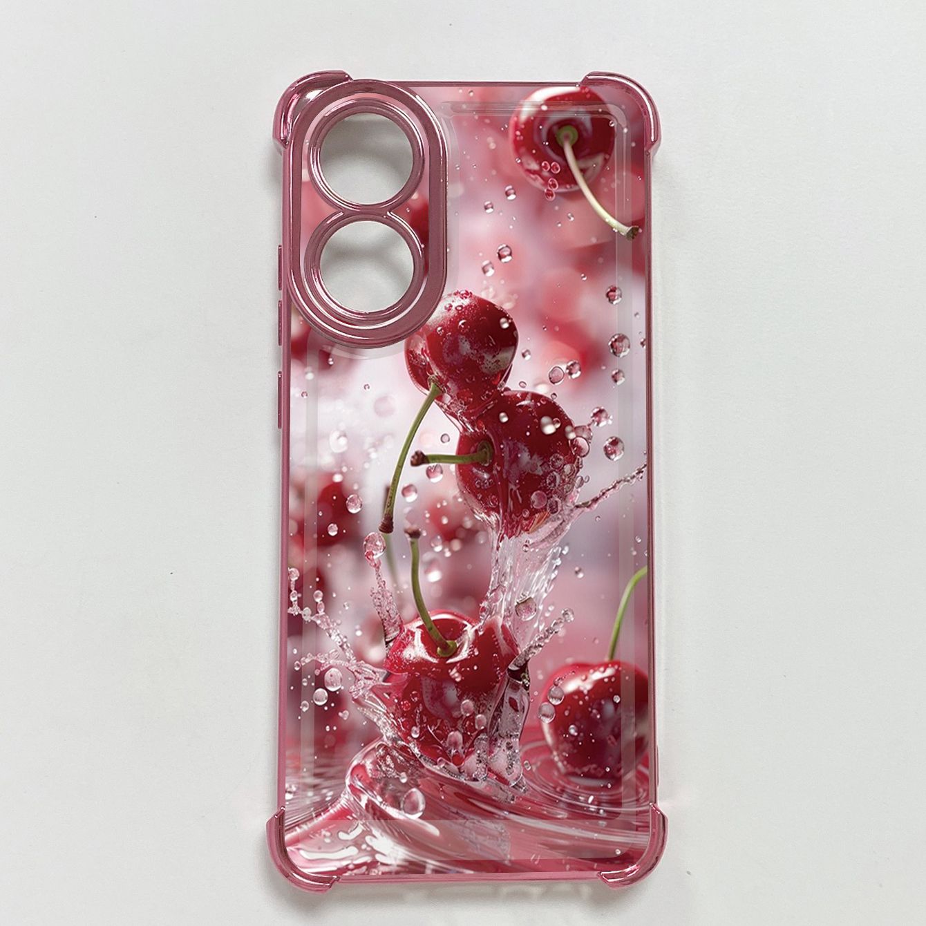 for OPPO A38 A5 Pro Realme C63 C51 C75 VIVO Plating Phone Case Shockproof Cover Cherry Splash