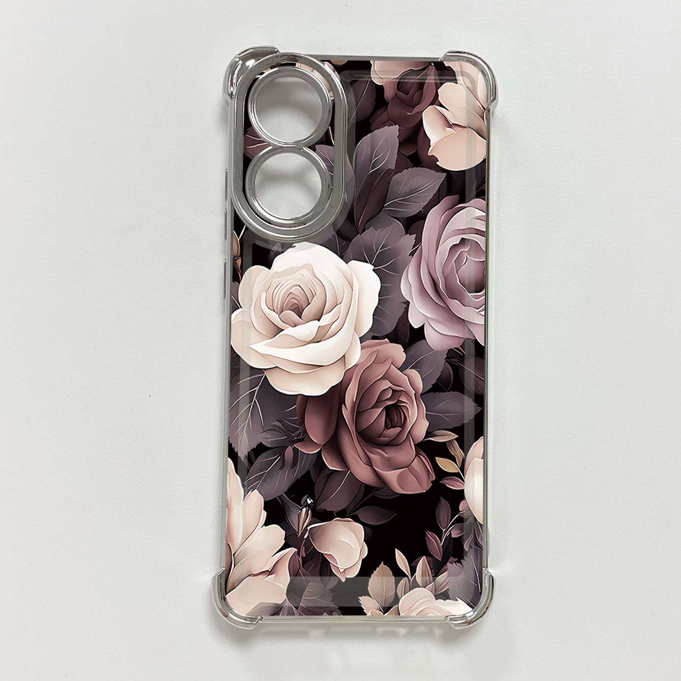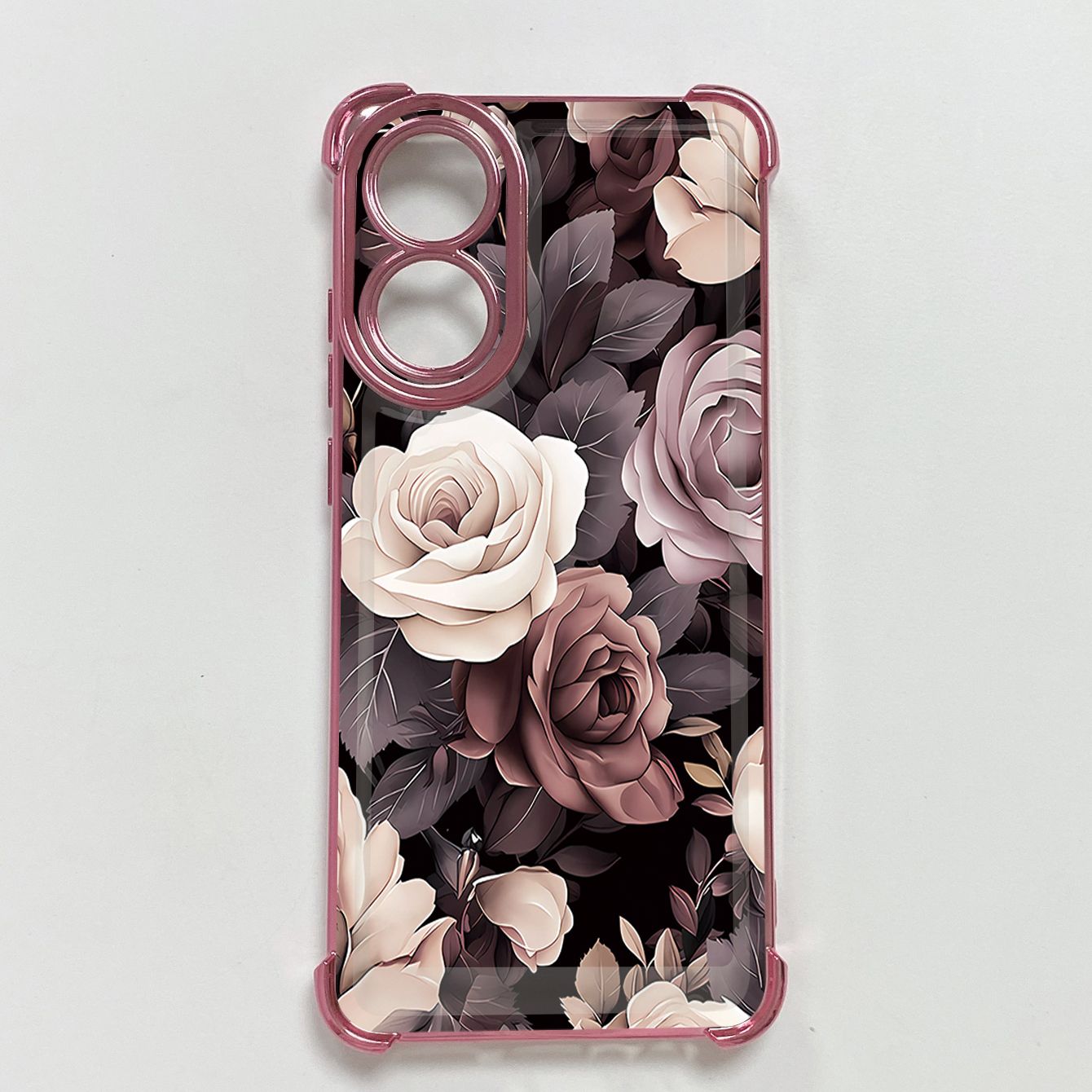 for OPPO A38 A5 Pro Realme C63 C51 C75 VIVO Plating Phone Case Shockproof Cover Retro Flower