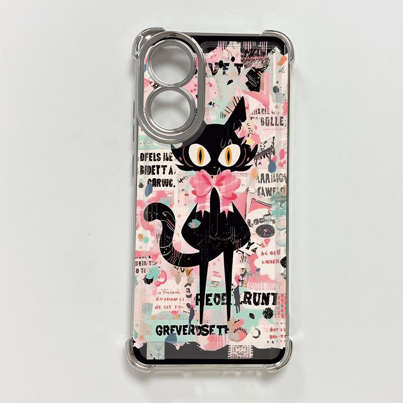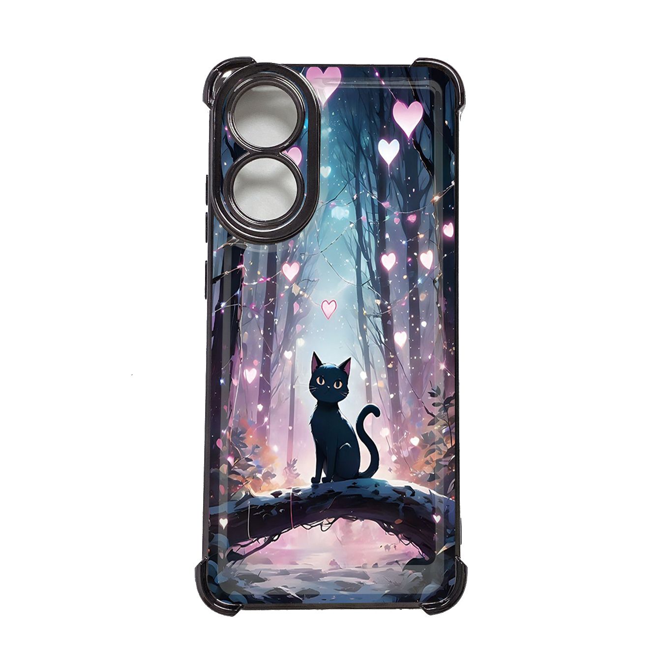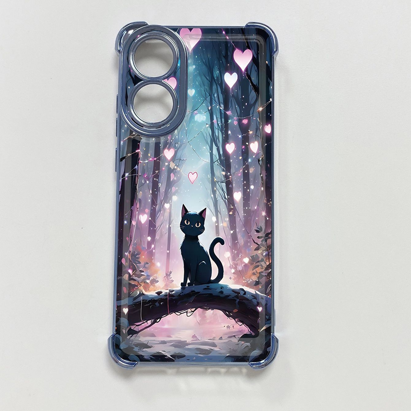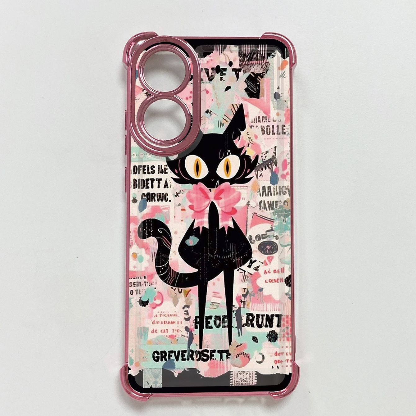 for OPPO A38 A5 Pro Realme C63 C51 C75 VIVO Plating Phone Case Shockproof Cover Black Cat Heart Flower