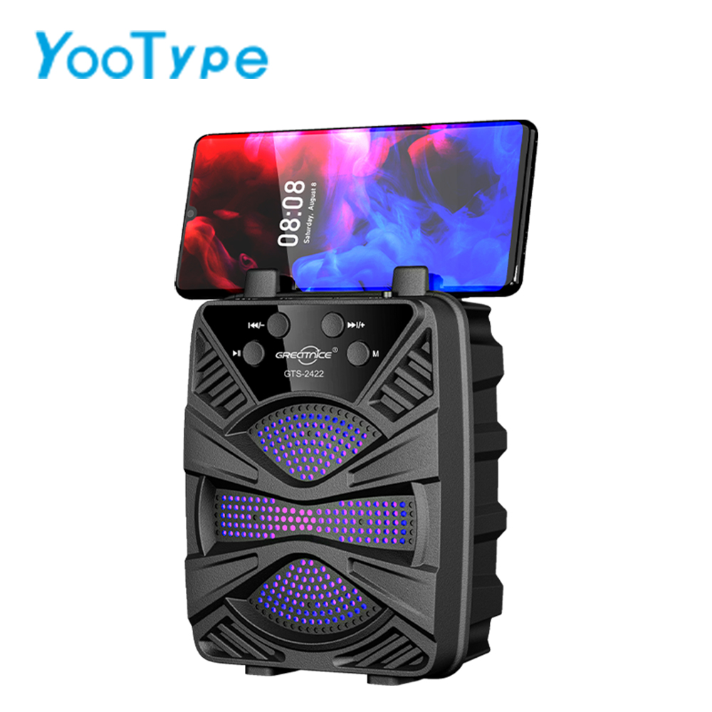 Portable Bluetooth Speaker YooType GTS2422 with Phone Holder Stand 5W Wireless Soundbox RGB Light High Bass TWS USB TF Card Playback FM Radio 360 Surround Sound Outdoor Party Home Media Black