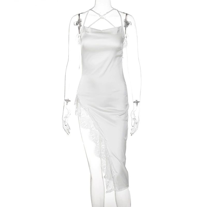New Fashion Sexy Lace Evening Dress Women High Split Party Club Dress Elegant Sleeveless Solid Color Clothing