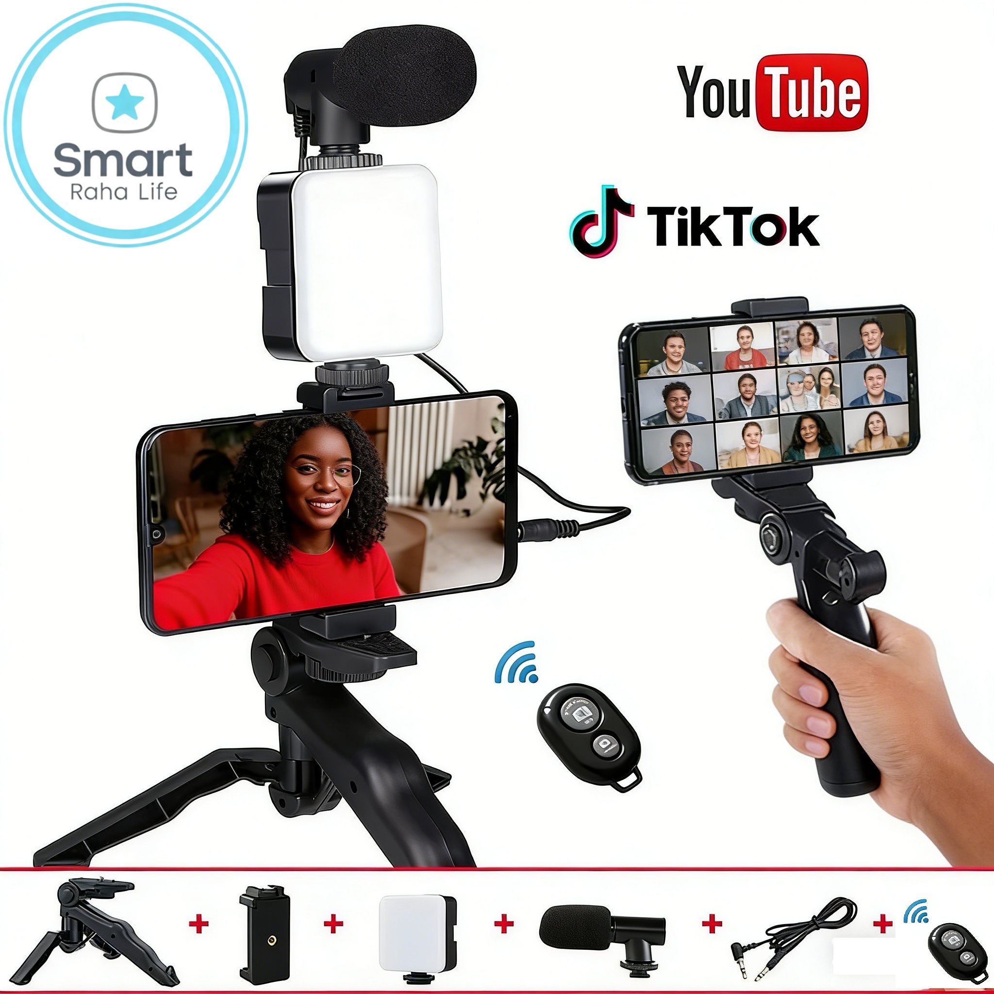 【Promotion】Smartrahalife Tripod Phone Stand with Ring Light and Microphone All in One Video Recording Kit for Content Creators Live Streaming YouTube TikTok