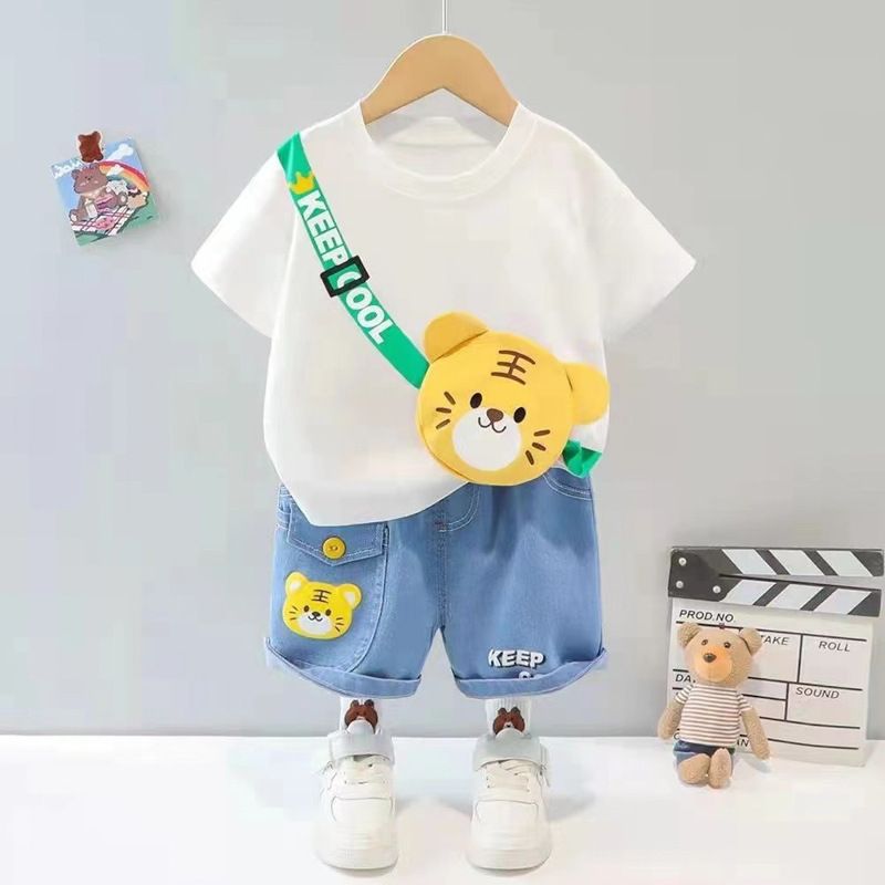 2 pcs set for children aged 0-5 new trendy boys' summer short-sleeved. Children's summer clothing with cartoon designs. Baby lightweight style.