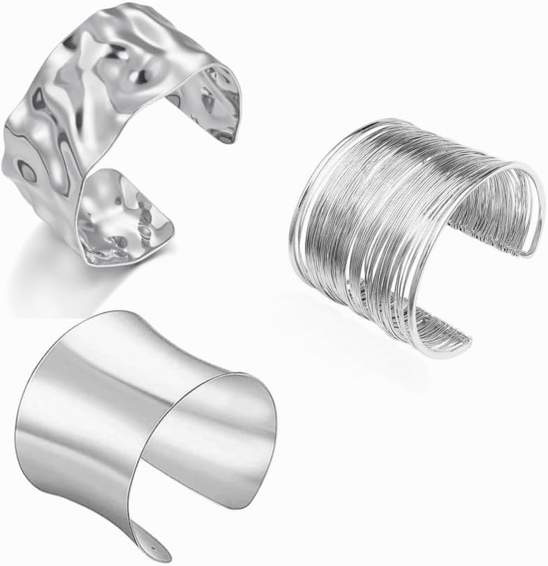 MS 3PCS Gold plated Chunky Cuff Bracelets for Women Irregular Minimalist Statement Bangle Bracelets Set Open Wide Bangle Arm Cuff Upper Arm Punk Jewelry