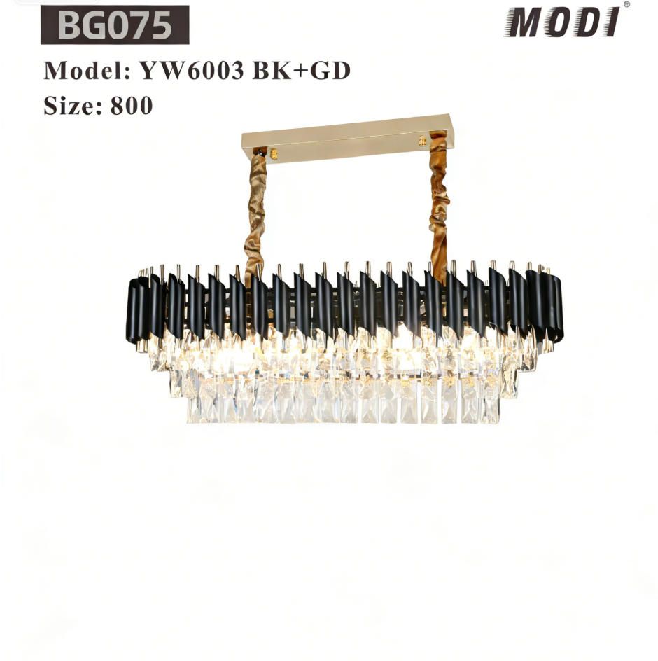 MODI Modern Rectangular Chandelier – 120 cm Gold Crystal 8-Light Luxury Oval Ceiling Pendant for Dining Room, Kitchen Island & Living Room