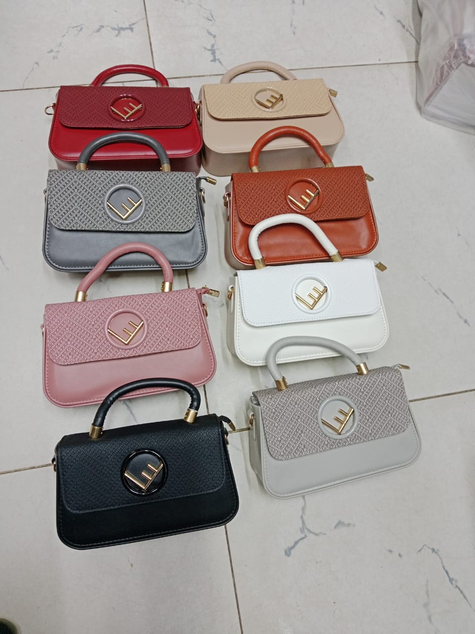 Black, grey, biege, red, brown, white, pink