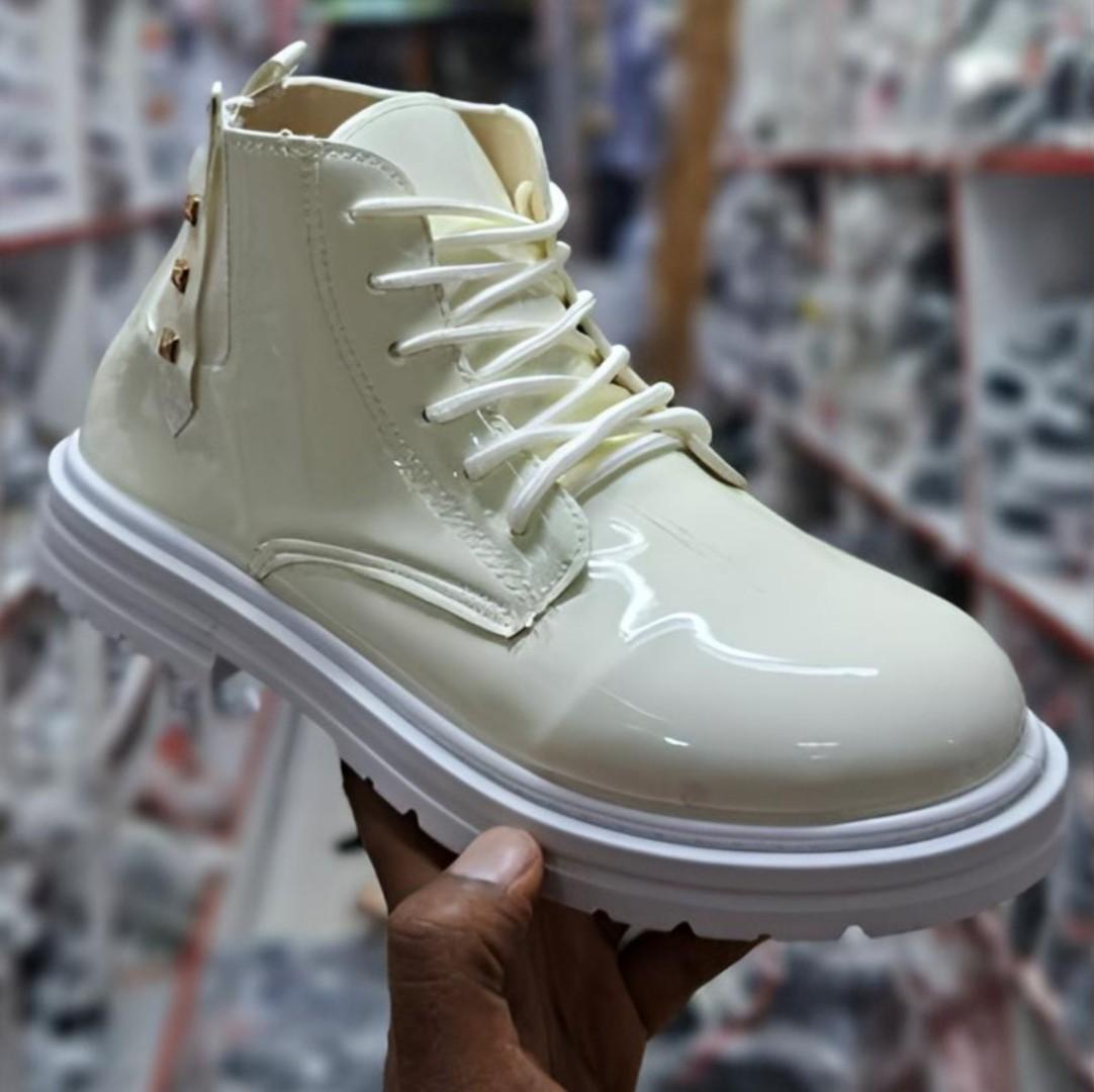 ✅ Women Leather Ankle Boots | British Style Lace-Up Martin Boots | Thick Platform Sole | Ladies Fashion Combat Boots | Black · Cream · Pink