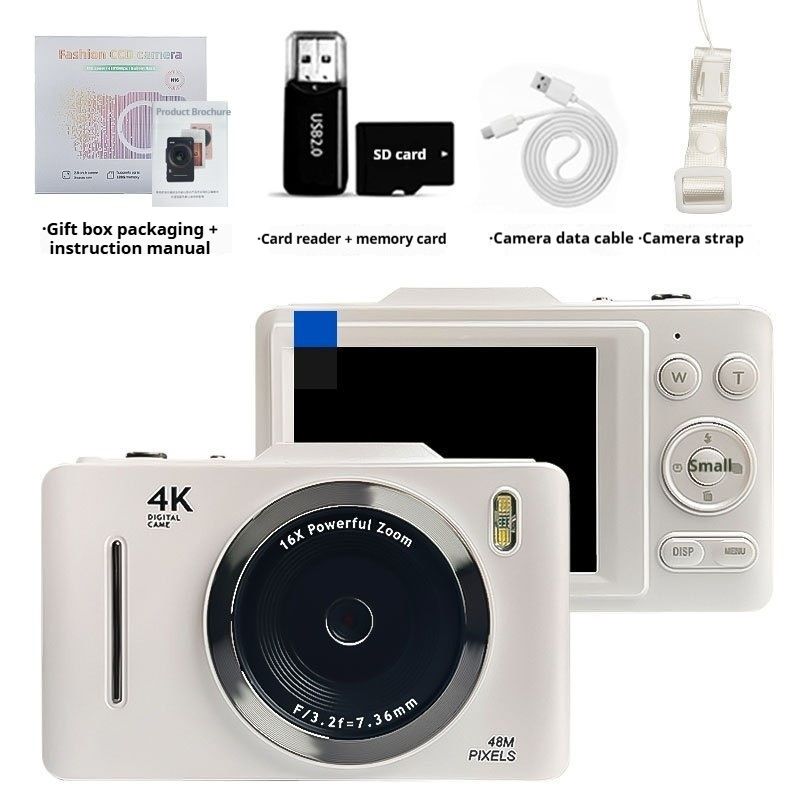 4K Digital Camera 48MP Compact FHD 64GB SD Card with 16X Zoom, Anti-Shake, 2.8" LCD - Portable Vlogging Camera for Kids & Beginners