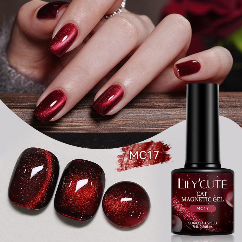LILY CUTE new autumn and winter red cat eye nail polish burgundy polarized transparent nail polish phototherapy gel