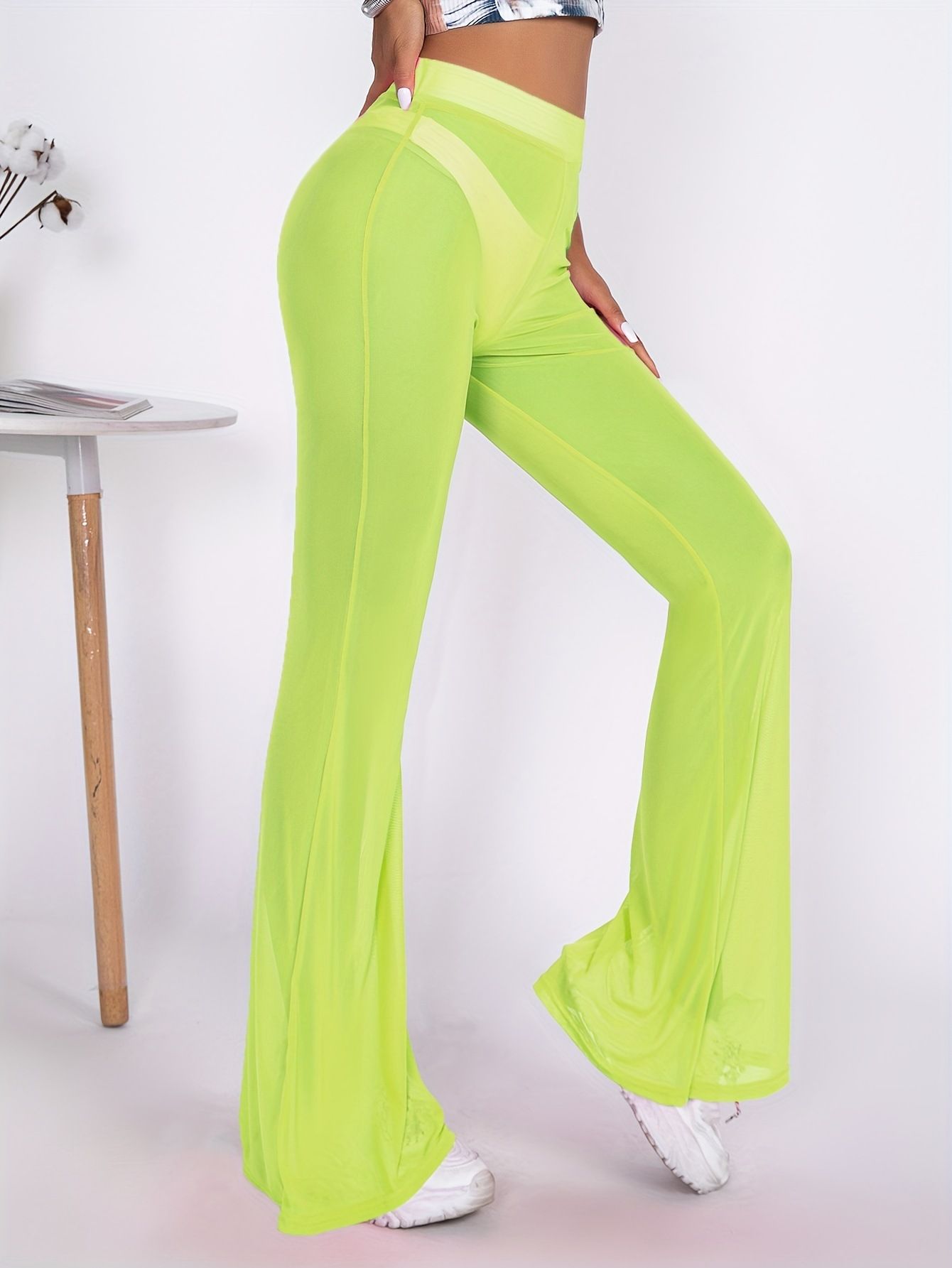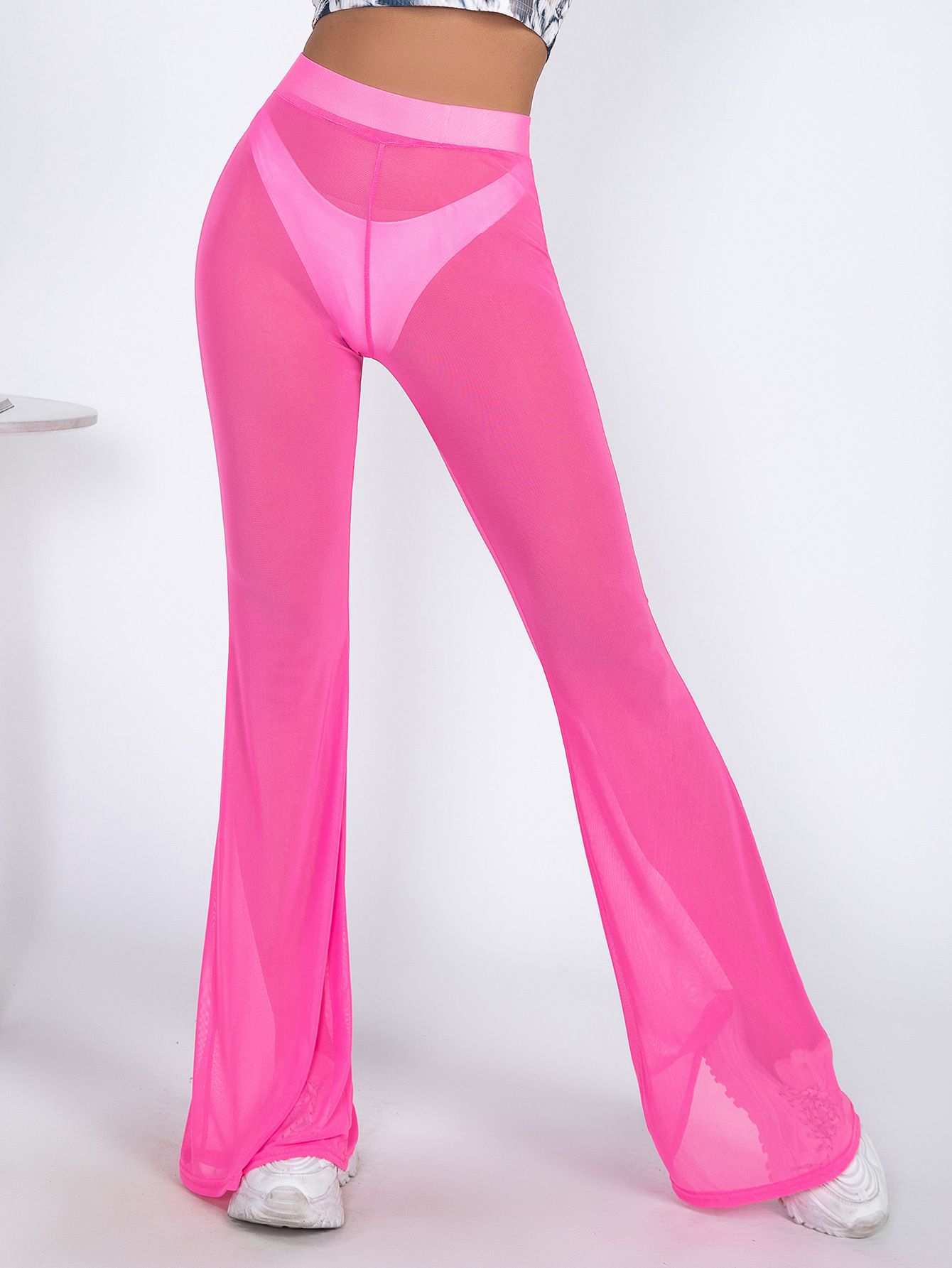 3*PC New hot selling cross-border mesh see through trumpet pants from Europe and America, summer fashion, sexy, high waisted, breathable and casual pants Style_1 S