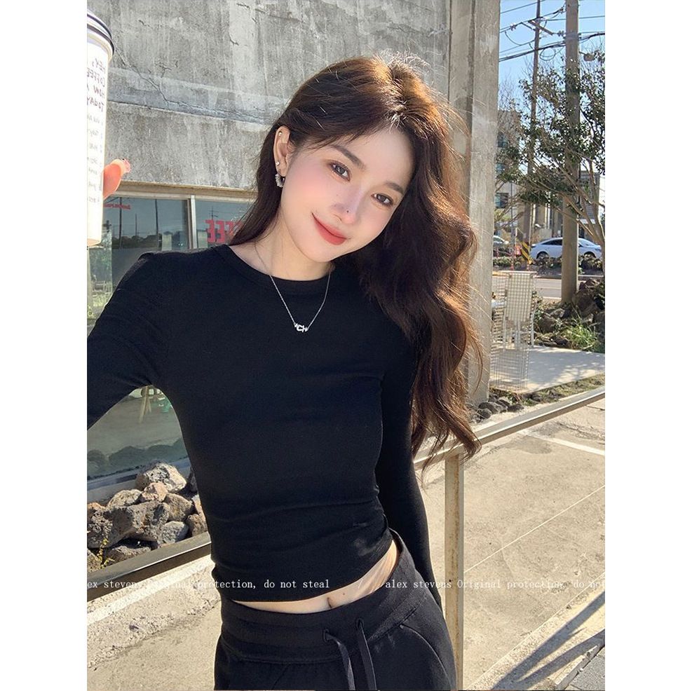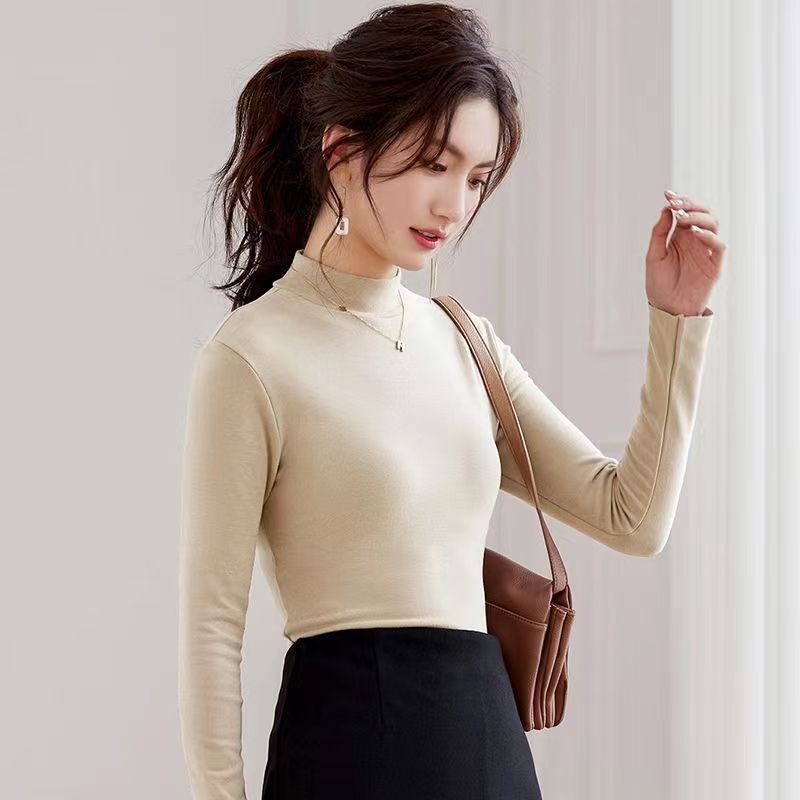 Cross border Korean semi high neck double-sided German velvet base shirt for women's autumn and winter new style, inner long sleeved T-shirt top, slim fit Style_1 M