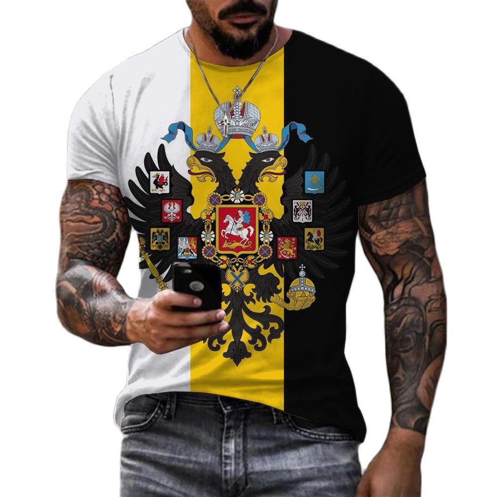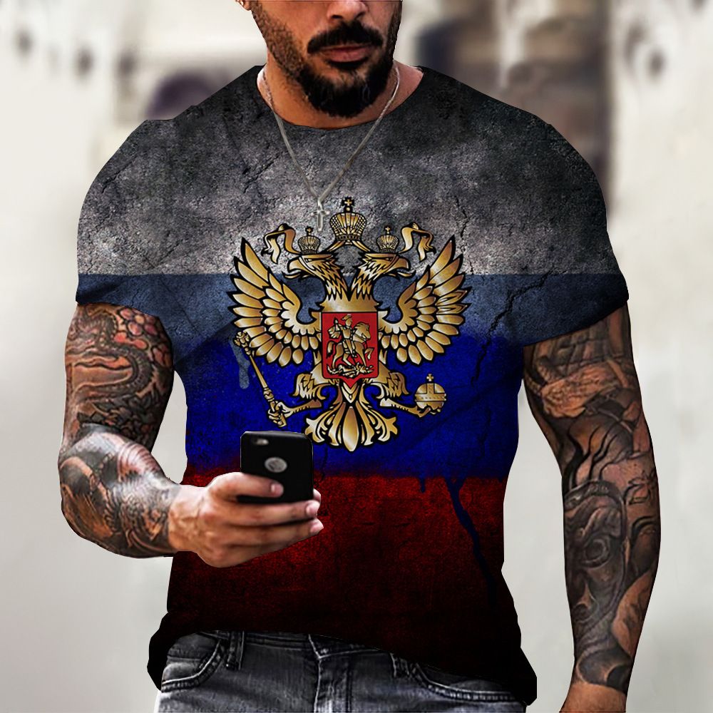 Fitsby Russian Bear 3D Printed Men's T-shirt Summer Round Neck Russian Flag Short Sleeve Men's Street Top Bear-31902 S