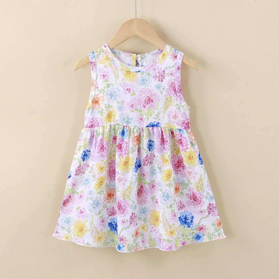 Girls' summer cotton dress for children, new style, large size, princess-style top and skirt, Korean version, girls' dress, children's clothing, floral pattern