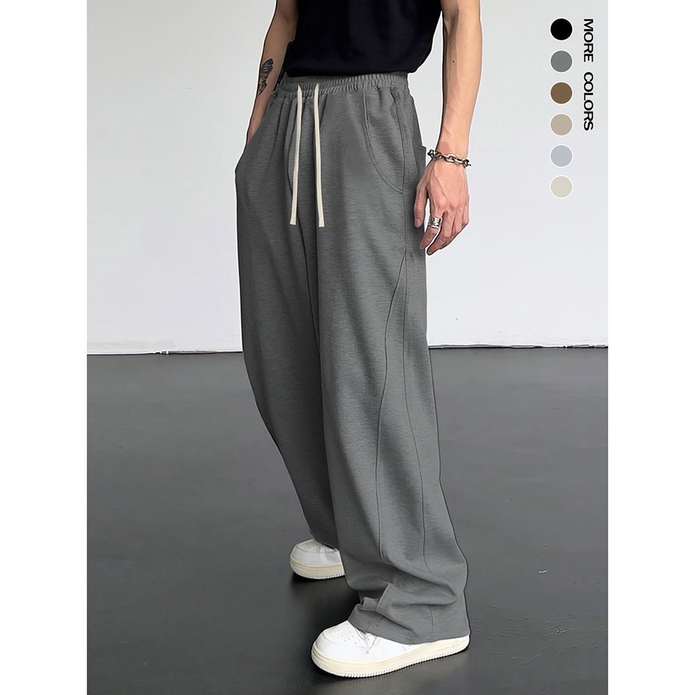 Cross border AliExpress foreign trade men's casual pants wide leg sports sweatpants loose high street design straight leg long pants black L