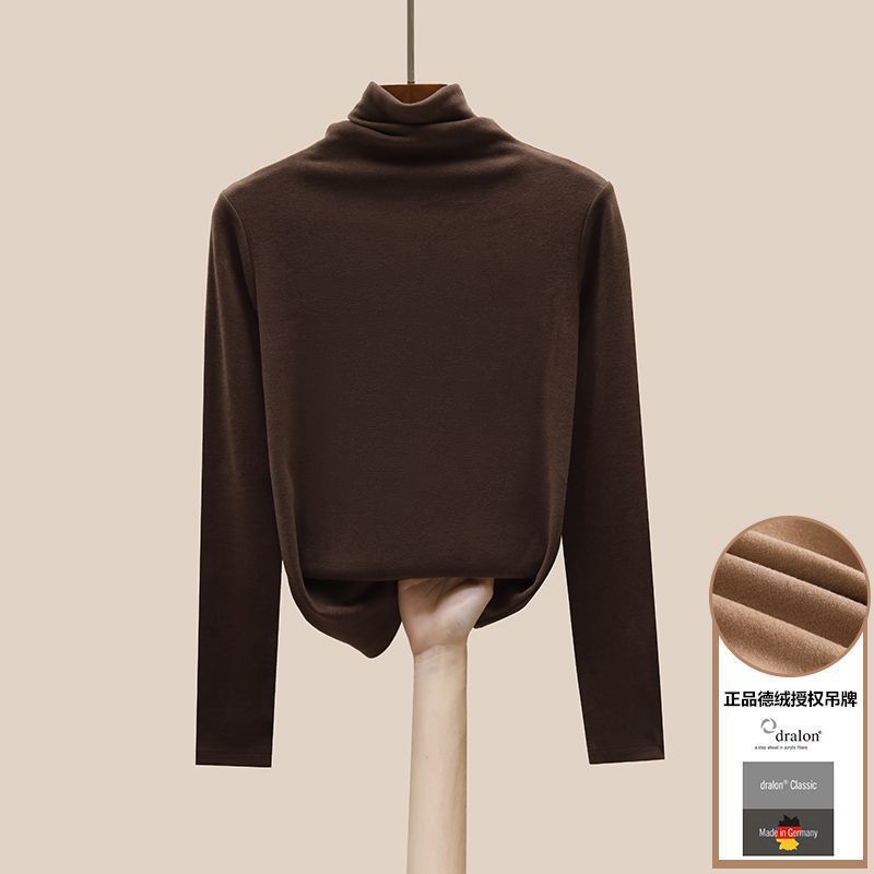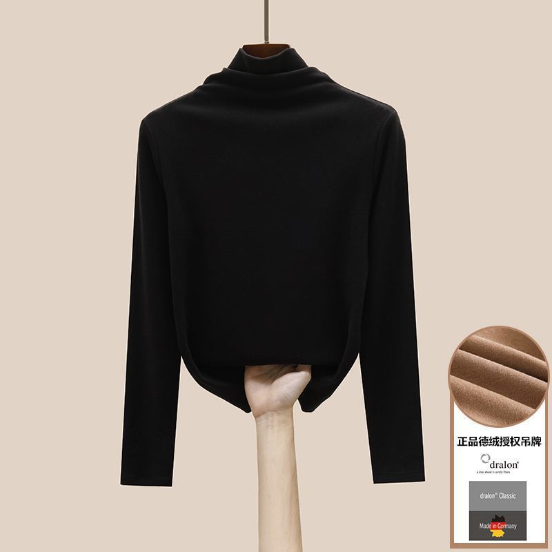 2025 new women's double-sided German velvet semi high neck long sleeved autumn and winter slim fit T-shirt women's solid color versatile temperament base Style_1 M