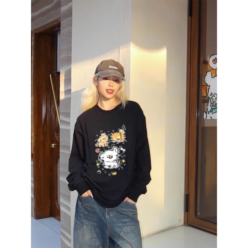 American style early autumn creative printed round neck sweatshirt, women's long sleeved T-shirt, thin version, solid color, milk silk top, T-shirt manufacturer Style_1 S