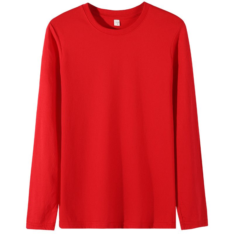 180g combed cotton men's long sleeved T-shirt autumn shirt round neck trendy cultural shirt printed logo T-shirt base shirt solid color black S