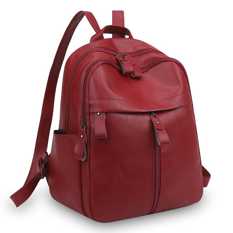Women's Trendy Solid Color PU Soft Leather Backpack Fashion Design Outdoor Casual Daily Commute Travel Bag  Waterproof Backpack