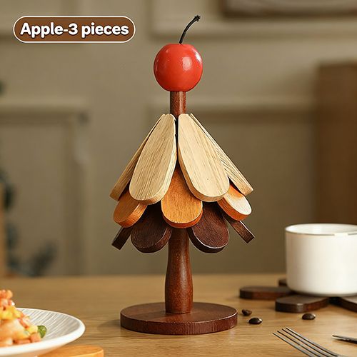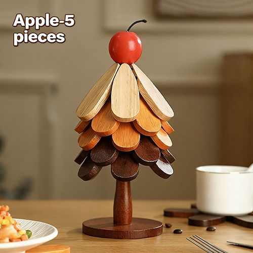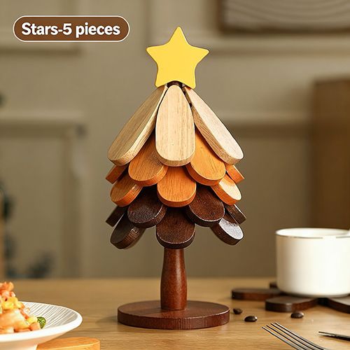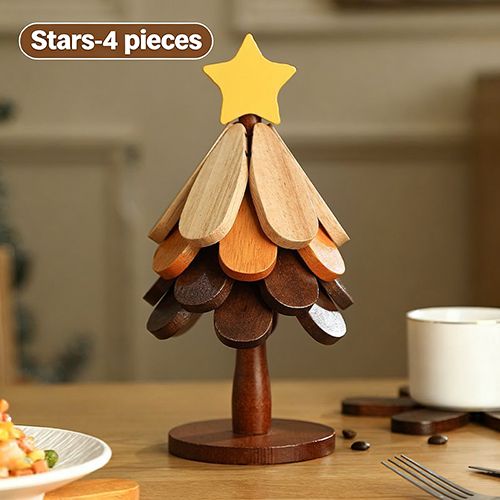 Wooden Tree Trivet Set, Foldable 3/4/5 Pcs Non-Slip Heat Resistant Trivets with Christmas Stand, Handcrafted Eco-Friendly Trivets for Hot Dishes Pots Bowls Teapots, Hot Pads Kitchen Decor