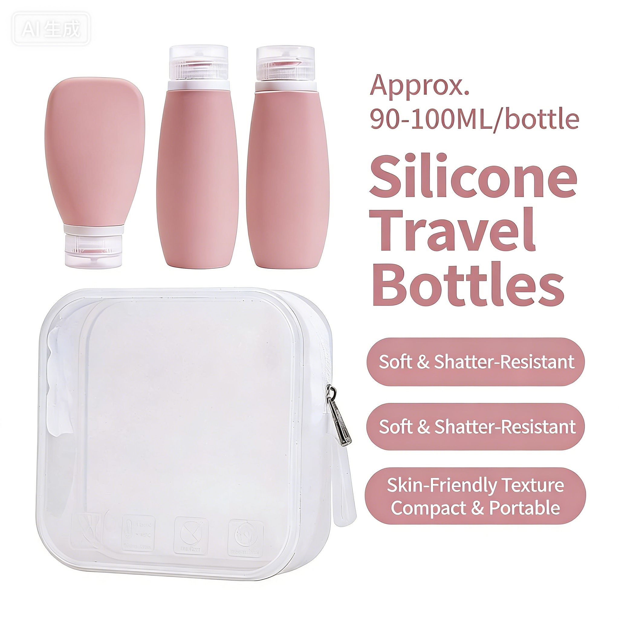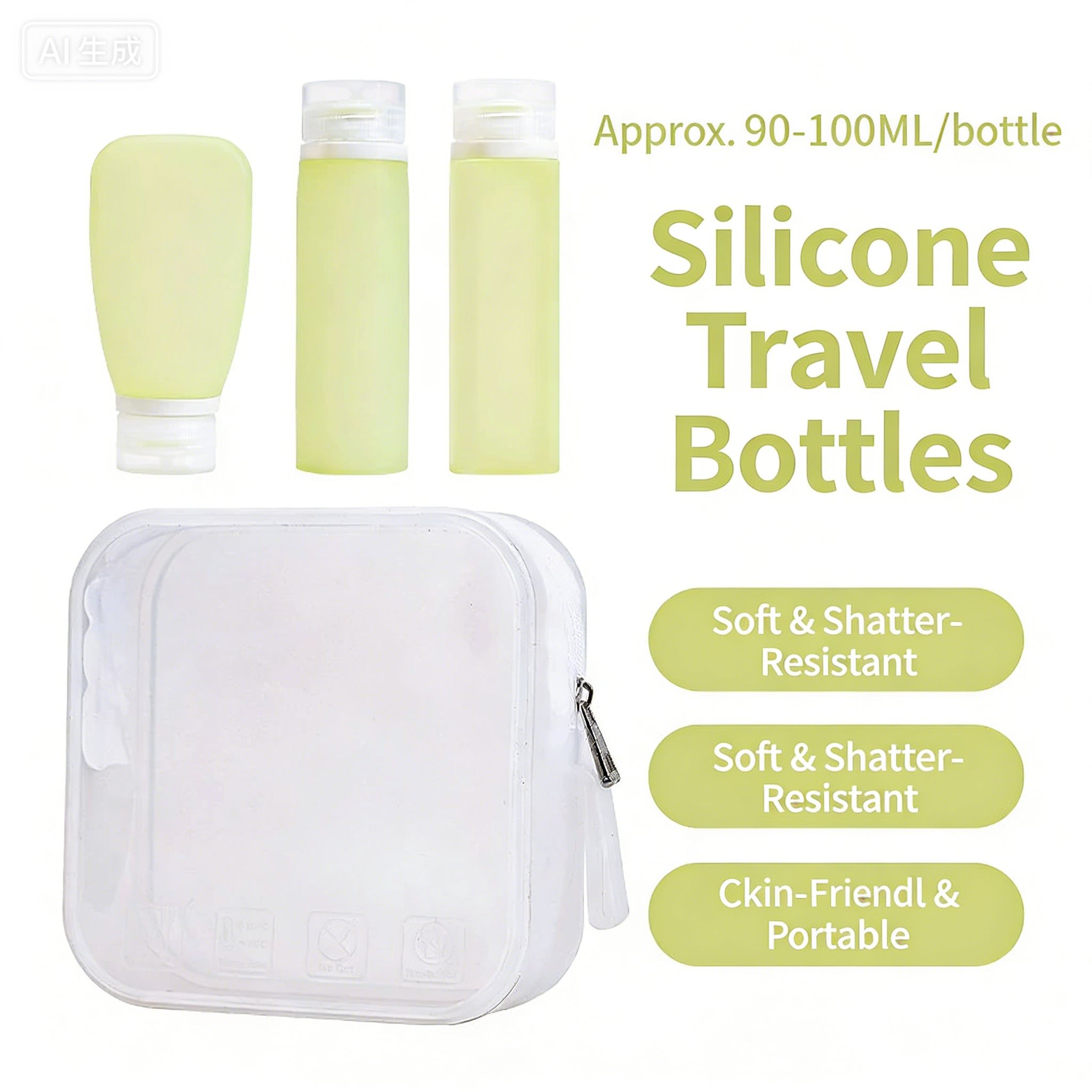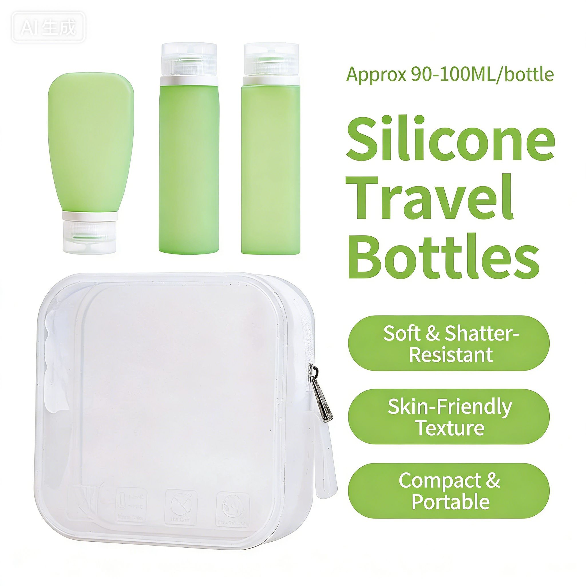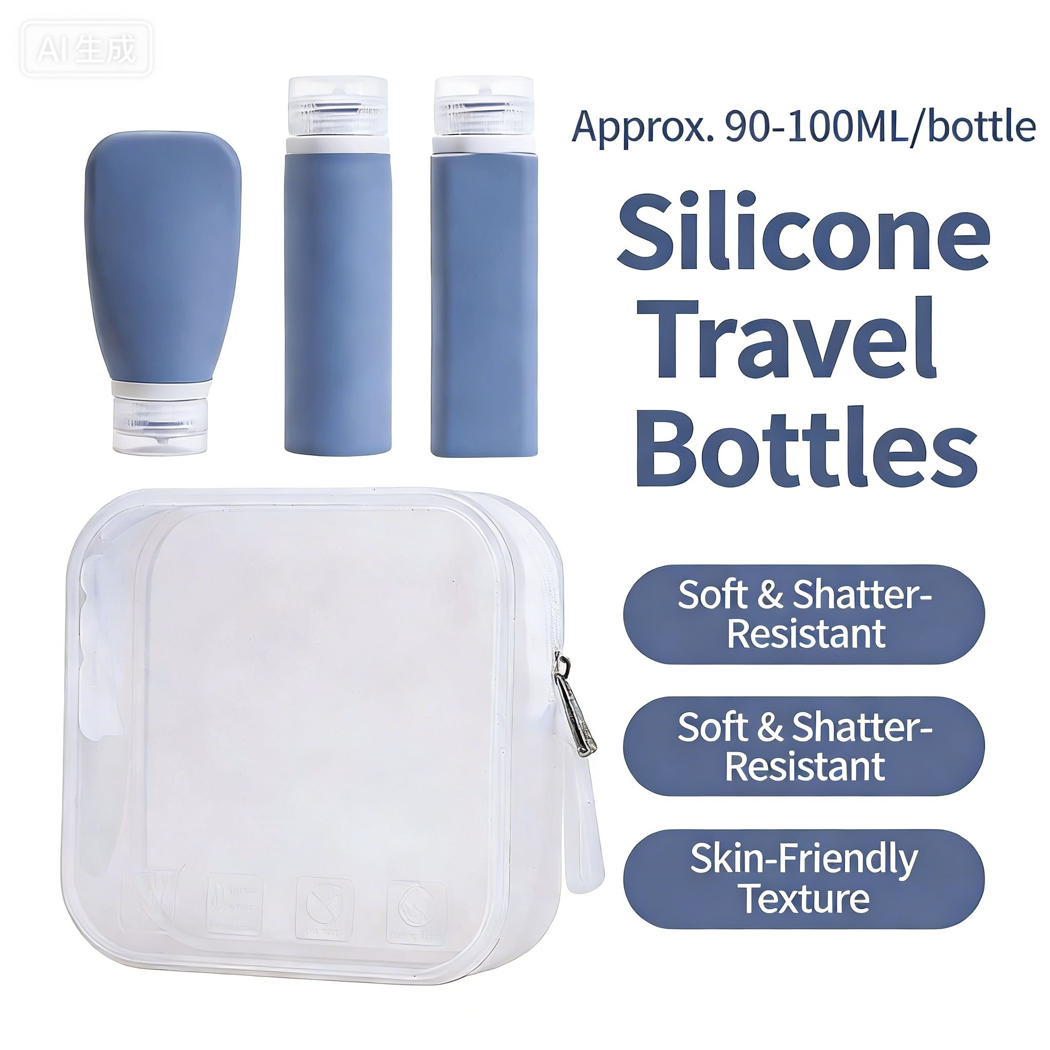 Silicone Refillable Travel Bottles Set with Lids, Reusable Leak-Proof Squeeze Containers for Toiletries