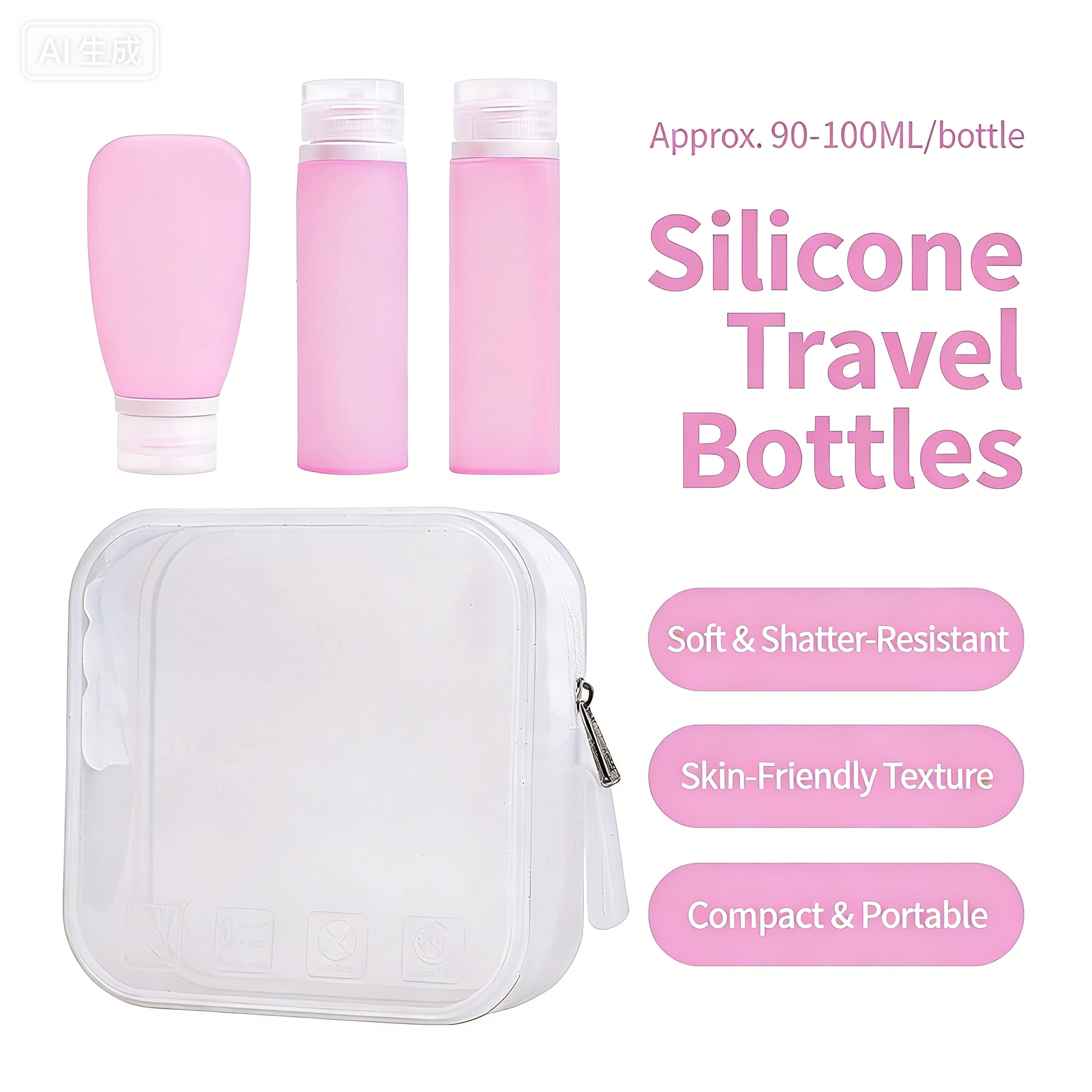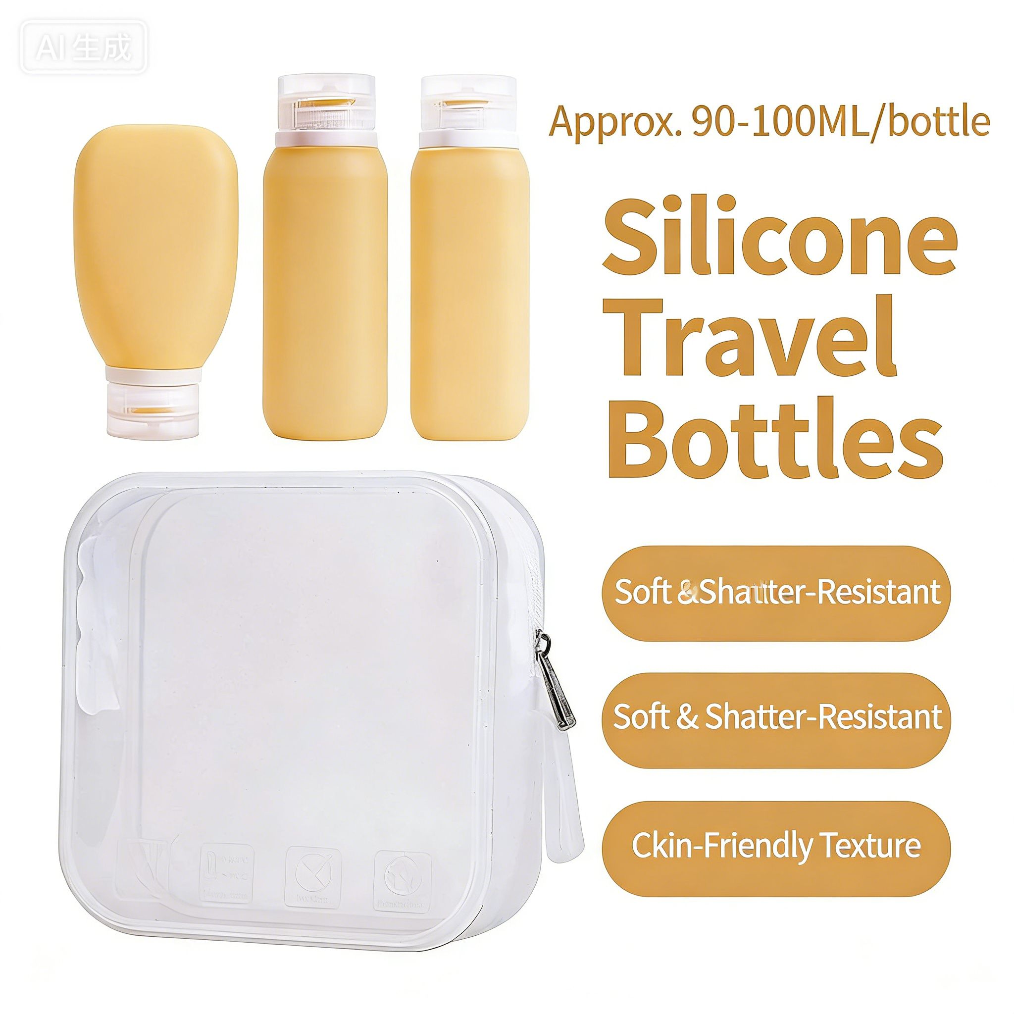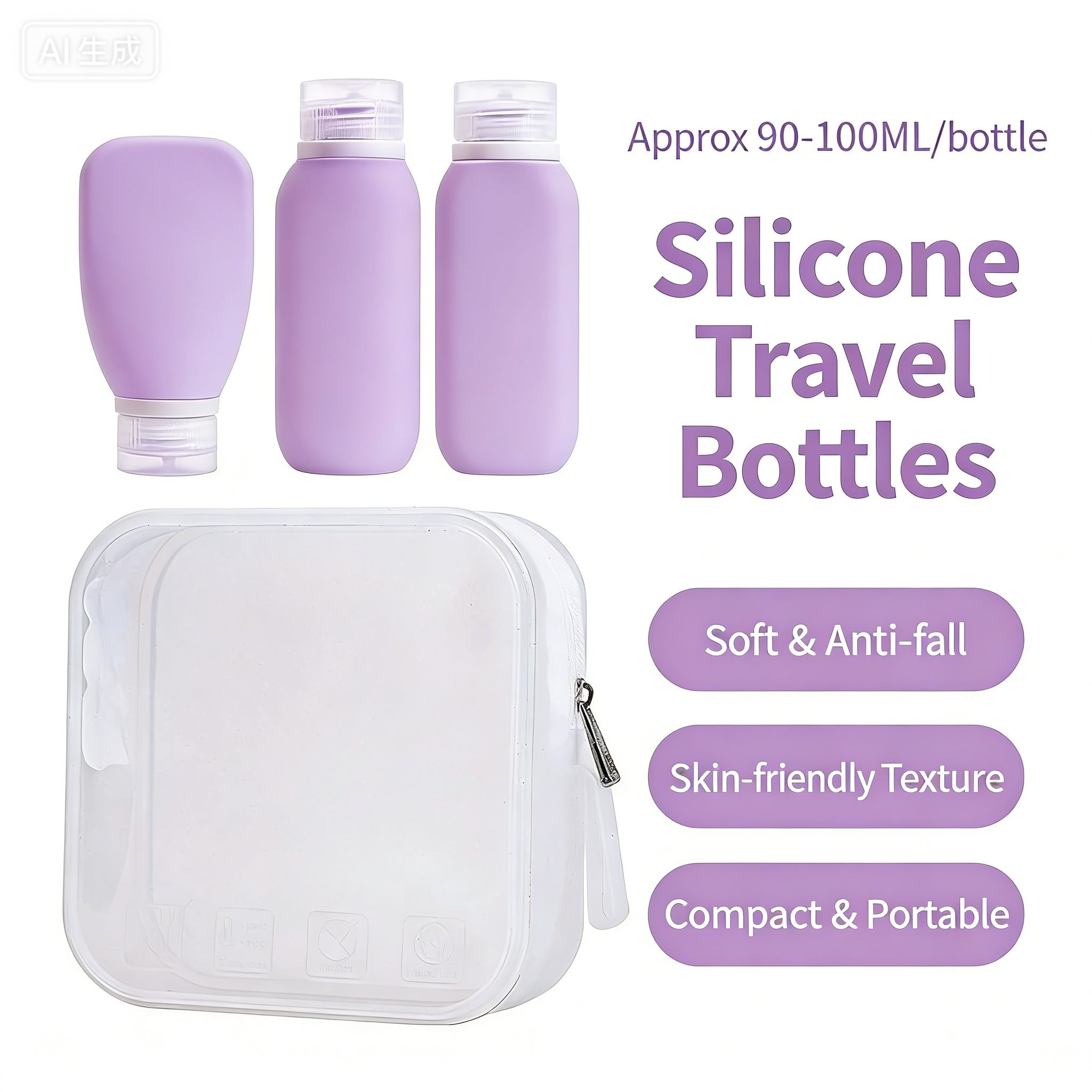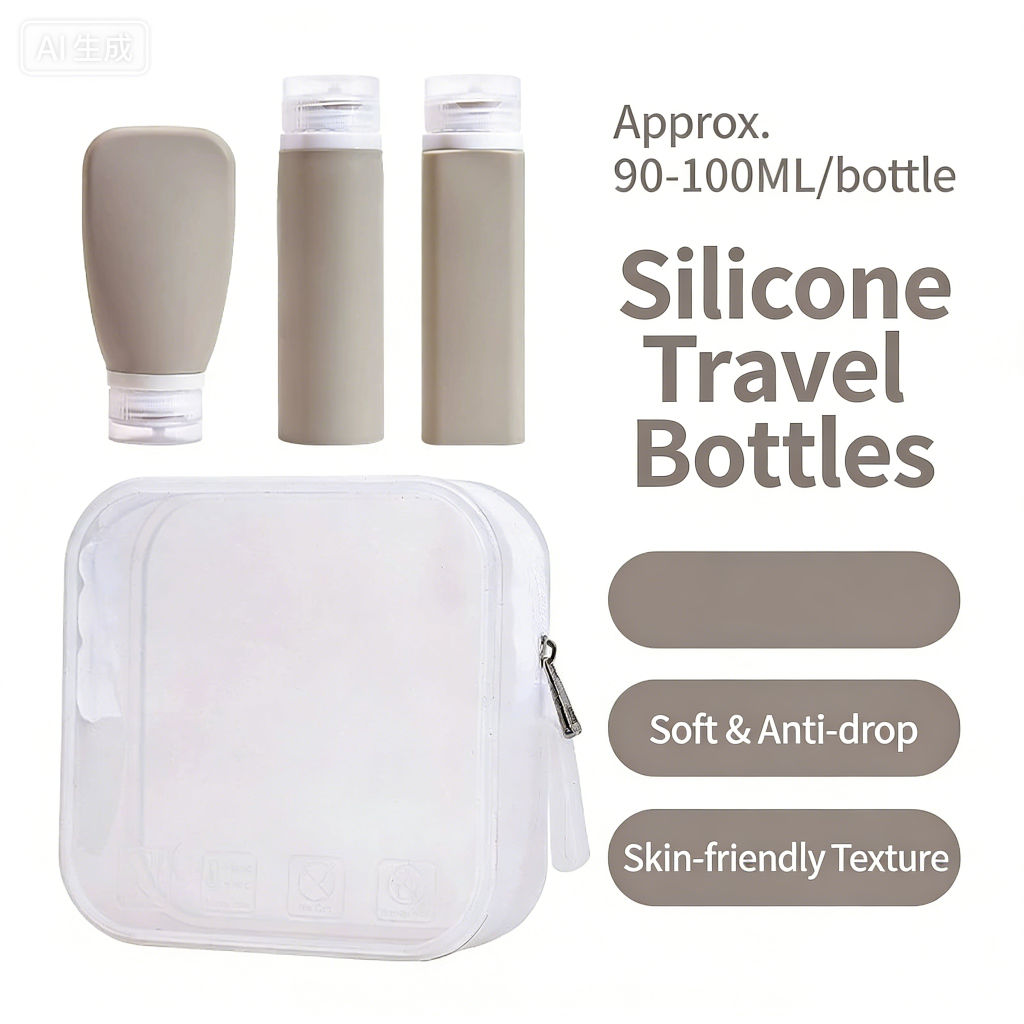 Silicone Refillable Travel Bottles Set with Lids, Reusable Leak-Proof Squeeze Containers for Toiletries
